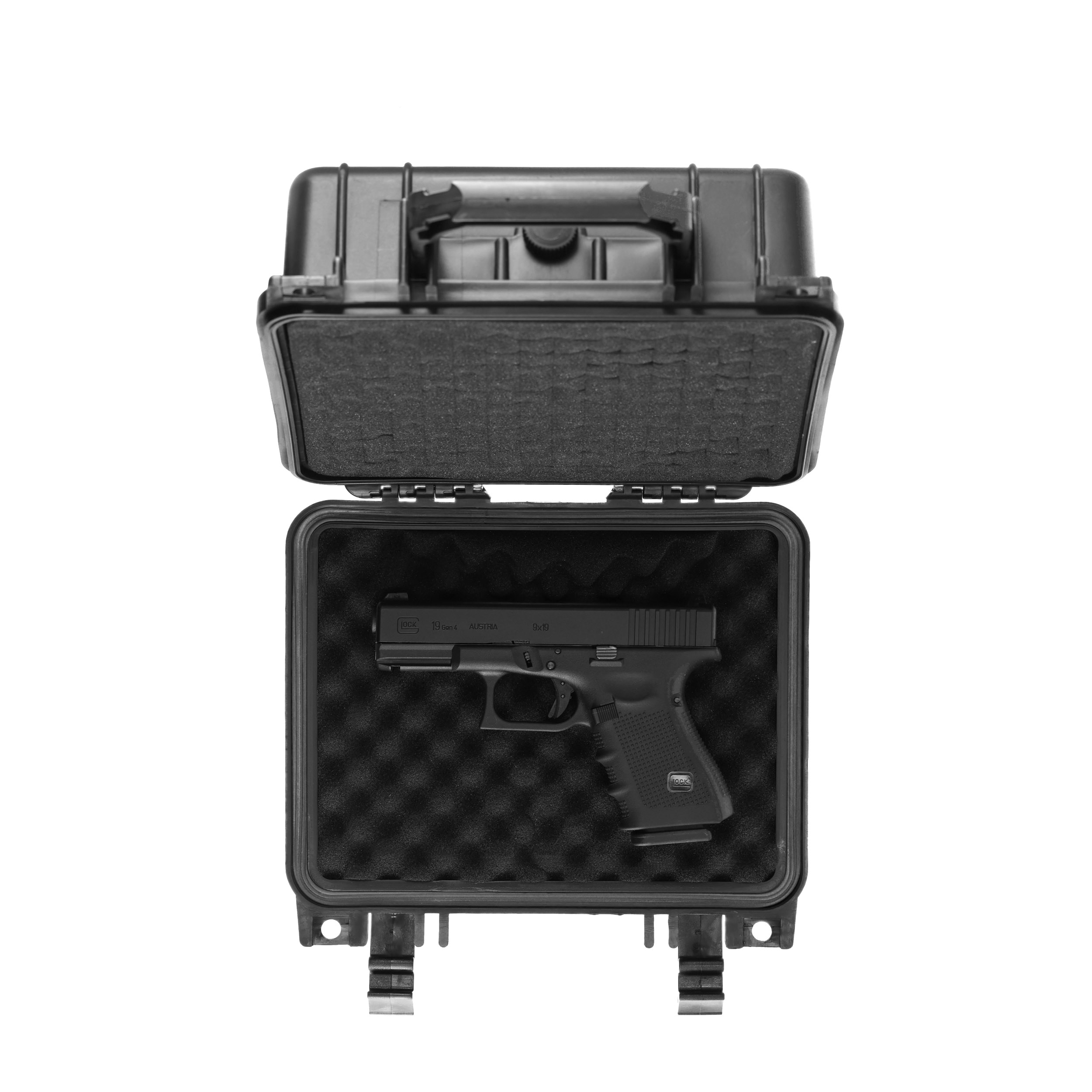 Poseidon 10 to wodoodporny kufer do przenoszenia broni krótkiej, wykonany z wytrzymałego polipropylenu o grubości 6 mm oraz modułowej pianki, która pozwala na dopasowanie przestrzeni do naszych potrzeb. Kufer ma zawór wyrównawczy, certyfikat IP55 oraz wojskowe oznaczenie NSN.