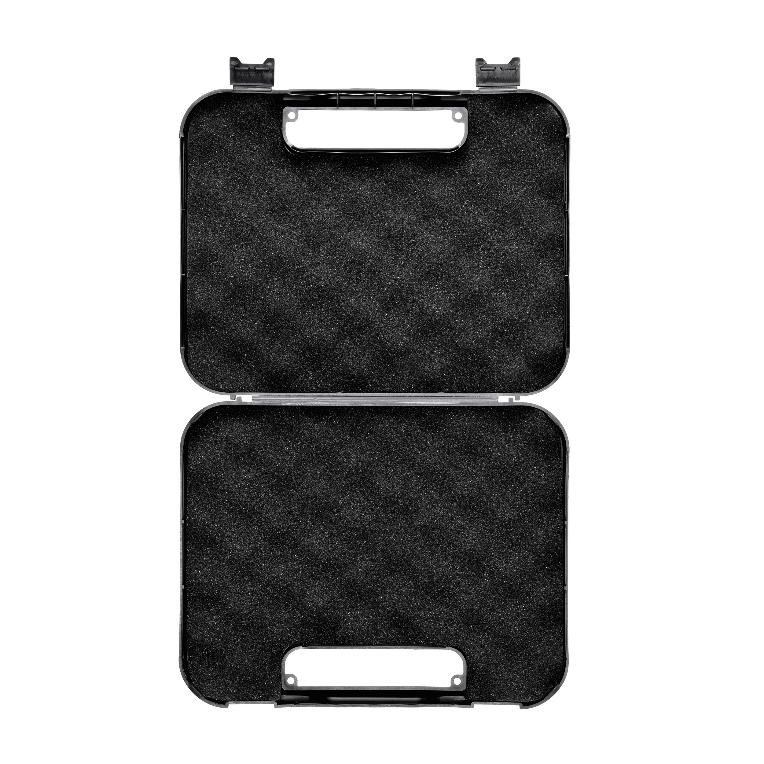 Kufer na pistolet Megaline czarny o wymiarach 24,5×17,8×3,9 cm to solidny futerał do przechowywania broni palnej i nie tylko. Wykonany został z tworzywa sztucznego i wyposażono go w 2 klamry zabezpieczające przed samoistnym otwarciem. Ma również chwyt transportowy w postaci wycięcia na dłoń. Wnętrze kufra wypełnia miękka gąbka o strukturze zębów rekina. Dzięki temu zawartość nie ulega przesuwaniu oraz uszkodzeniu w momencie przenoszenia. Futerał można zamknąć na kłódkę. Nadaje się też do transportowania replik airsoftowych oraz wiatrówek.