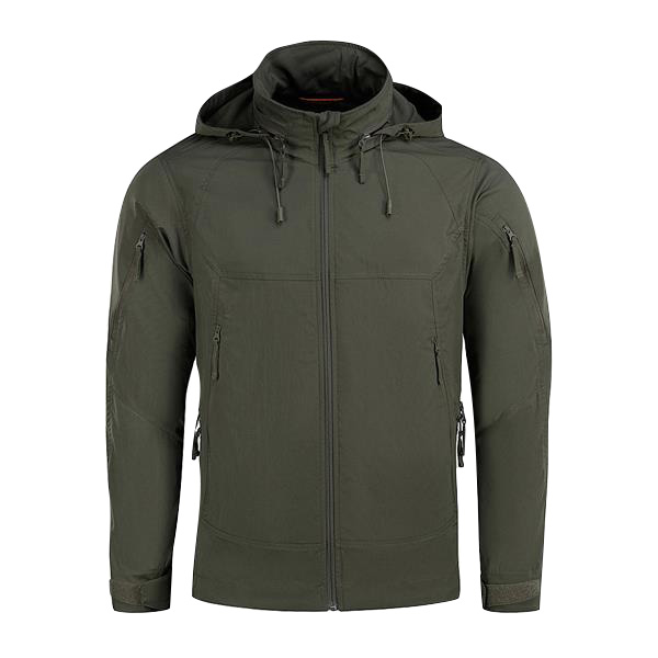 Niewielka grubość tkaniny w połączeniu z wysoką elastycznością sprawia, że kurtka pozwoli na wygodne pomieszczenie grubej bluzy polarowej. Wiatroodporne właściwości kurtki w połączeniu z dodatkową warstwą docieplającą dobrze sprawdzą się w przypadku niższych temperatur. W razie potrzeby szybkiego obniżenia temperatury wewnątrz wystarczy rozpiąć wszyte pod pachami otwory wentylacyjne. Dwie duże boczne kieszenie umożliwią zmieszczenie podstawowych, drobnych akcesoriów, natomiast te wszyte na ramionach umożliwią szybki dostęp do kompasu czy notatnika. Kurtka softhsellowa ma w założeniu chronić głównie przed wiatrem – z tego też powodu rękawy i pas zostały wyposażone w regulowane ściągacze, pozwalające na uszczelnienie kurtki.