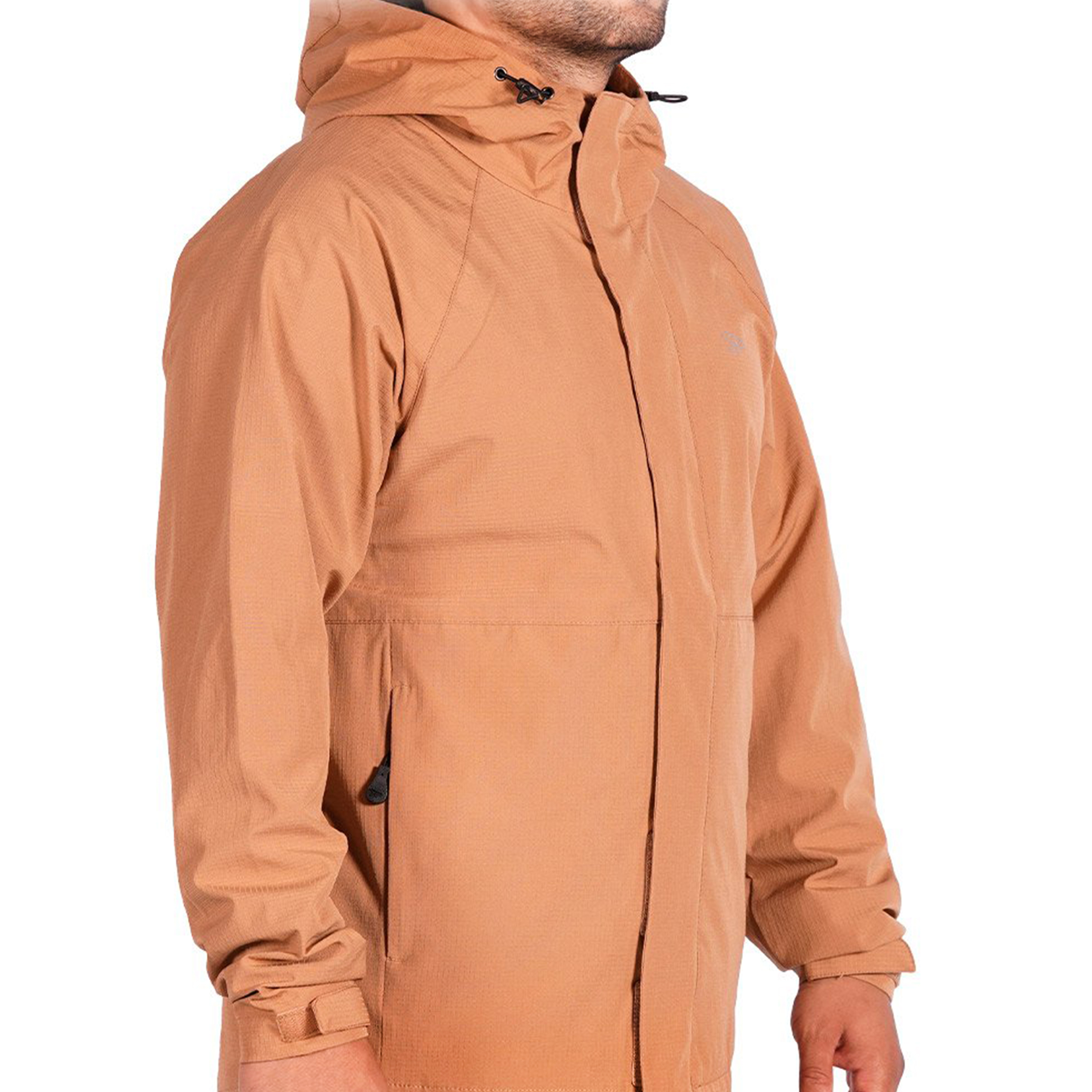 - Regulowany kaptur ze ściągaczem zapewnia doskonałą ochronę głowy przed deszczem i wiatrem.