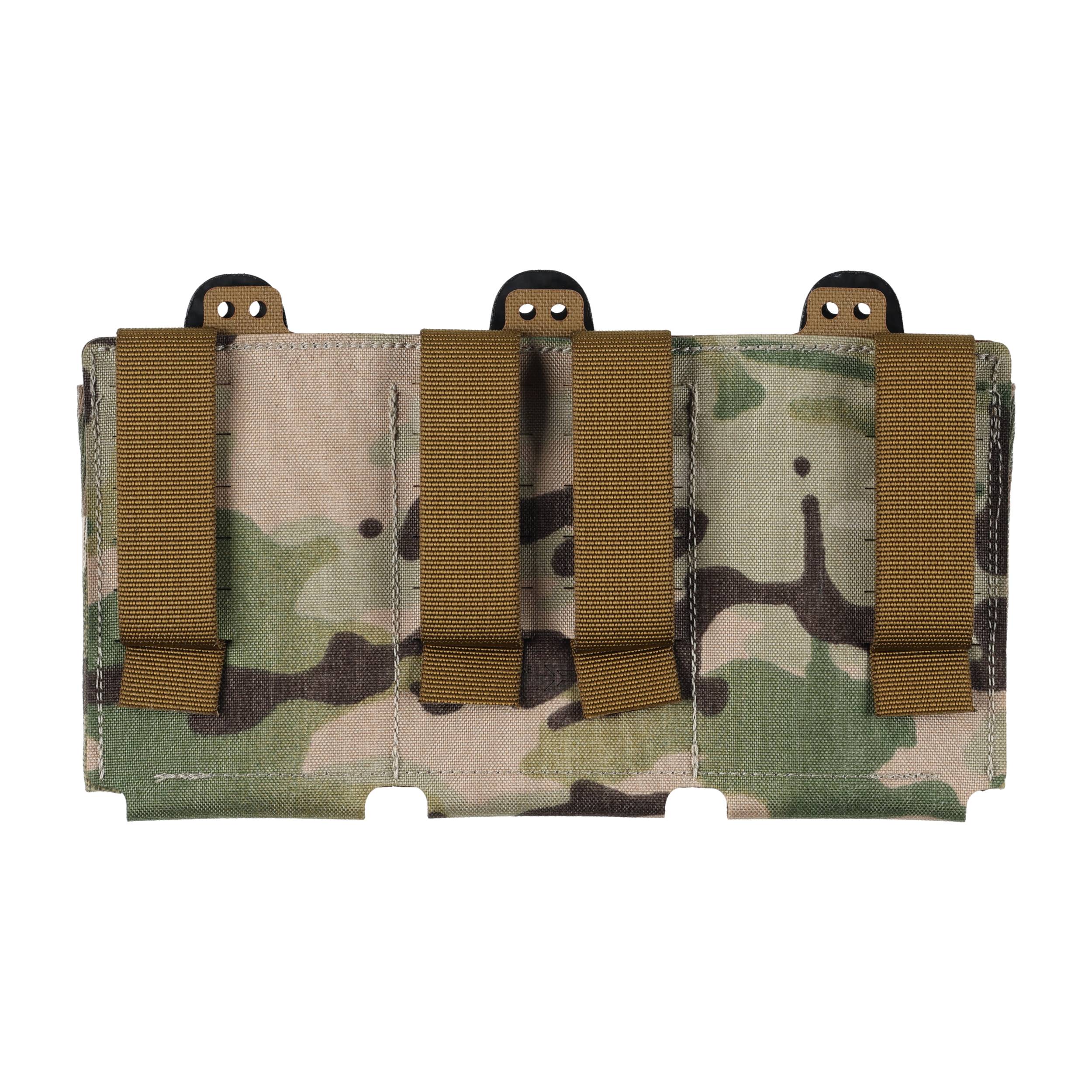 Neptune Spear FlatMag Triple AR15 w kolorze Multicam to ładownica wykonana z elastycznej taśmy złączonej płaskim szwem. Przeznaczona jest do przenoszenia magazynków kompatybilnych z platformami AR-15, AK, AUG. Dzięki zastosowaniu płaskiego szwu, ma bardzo niewielką grubość – rzędu kilku milimetrów. Duża rozciągliwość zapewnia odpowiednią retencję i chroni magazynek przed samoistnym wysunięciem. Przednia część ładownicy jest dodatkowo usztywniona. Do ładownicy nie pasują szersze magazynki od amunicji 7,62×51 (SR-25/AR-10).