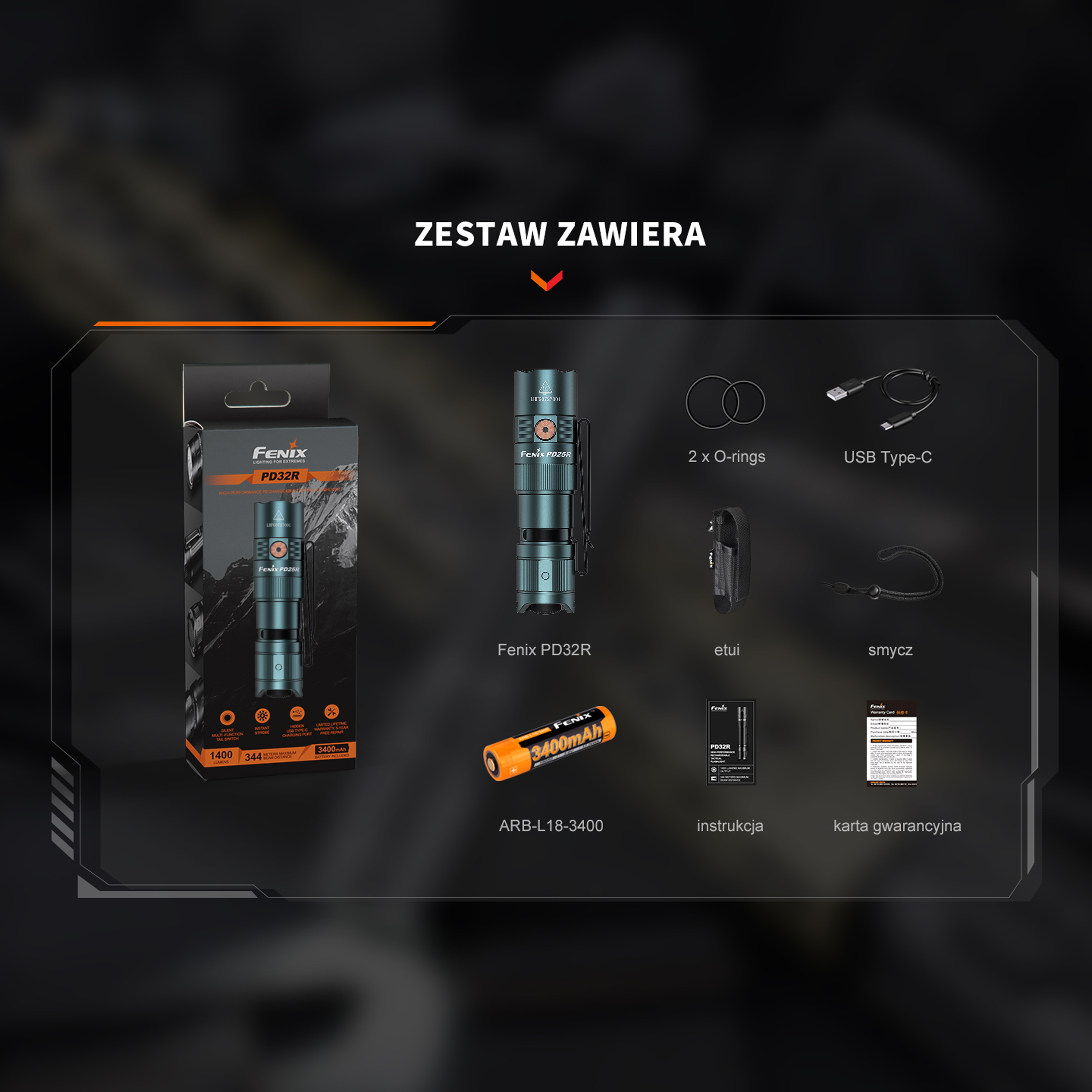 - w zestawie akumulator litowo-jonowy Fenix ARB-L16-700P