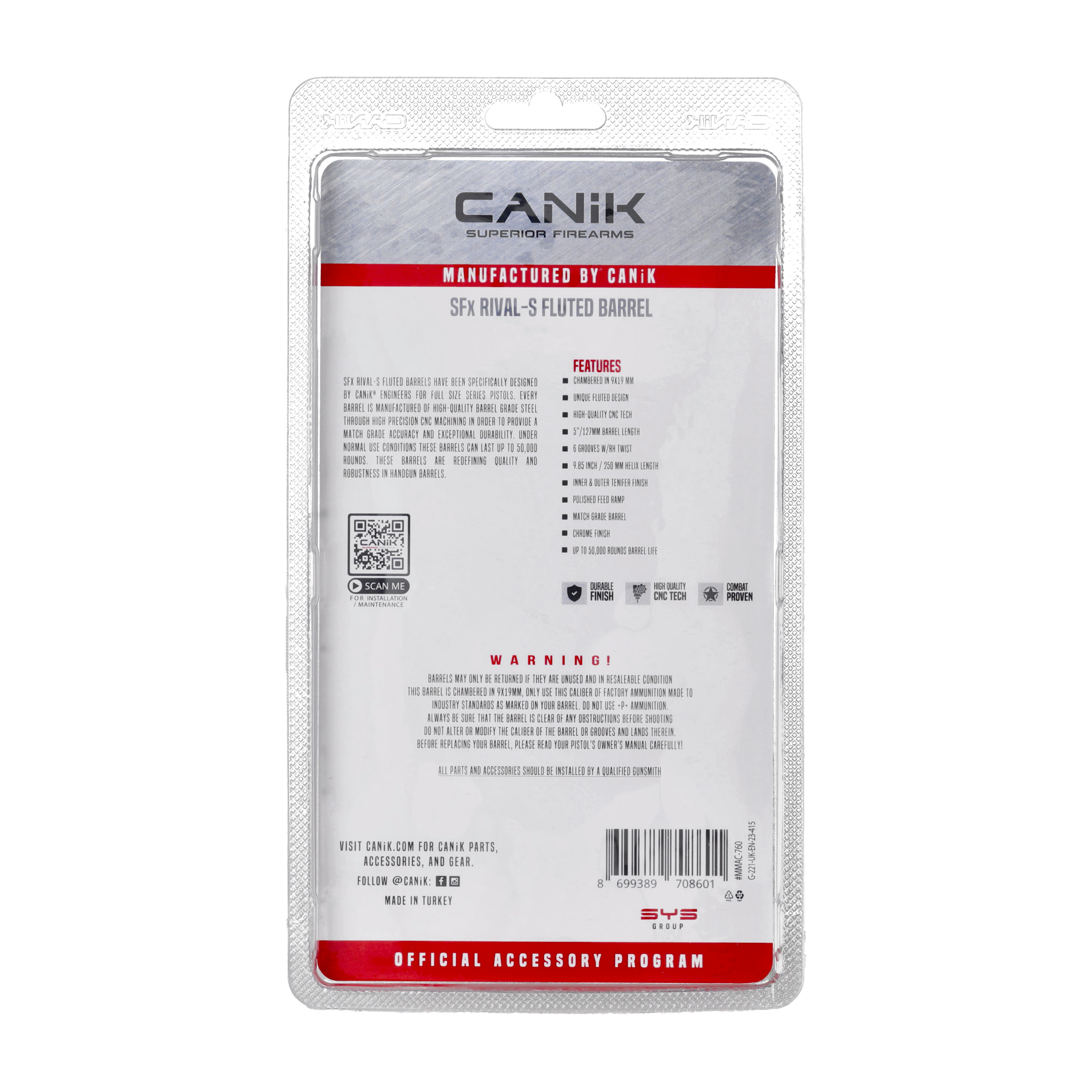 Lufa Canik Full Size Fluted Barrel SFx RIVAL chrome to zaawansowany technologicznie element, który poprawia celność, zwiększa trwałość oraz redukuje masę pistoletu. Dzięki ryflowanej konstrukcji, wykonanej z najwyższej jakości stali lufowej, zapewnia lepsze chłodzenie, zmniejszoną wagę i optymalną stabilność podczas strzelania.