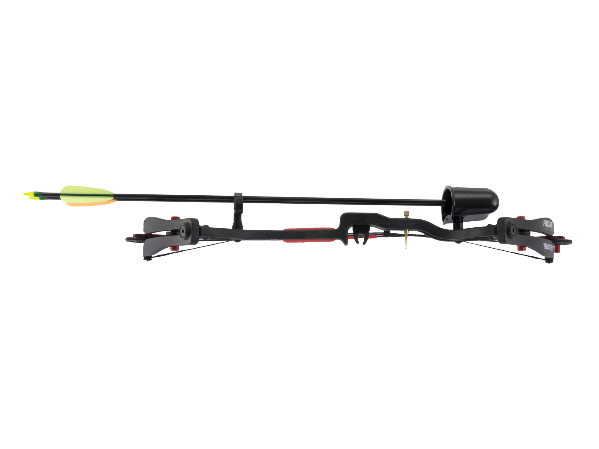Łuk bloczkowy Buster w kolorze czarnym stworzony został z myślą o początkujących adeptach łucznictwa w szczególności dzieci i młodzieży.