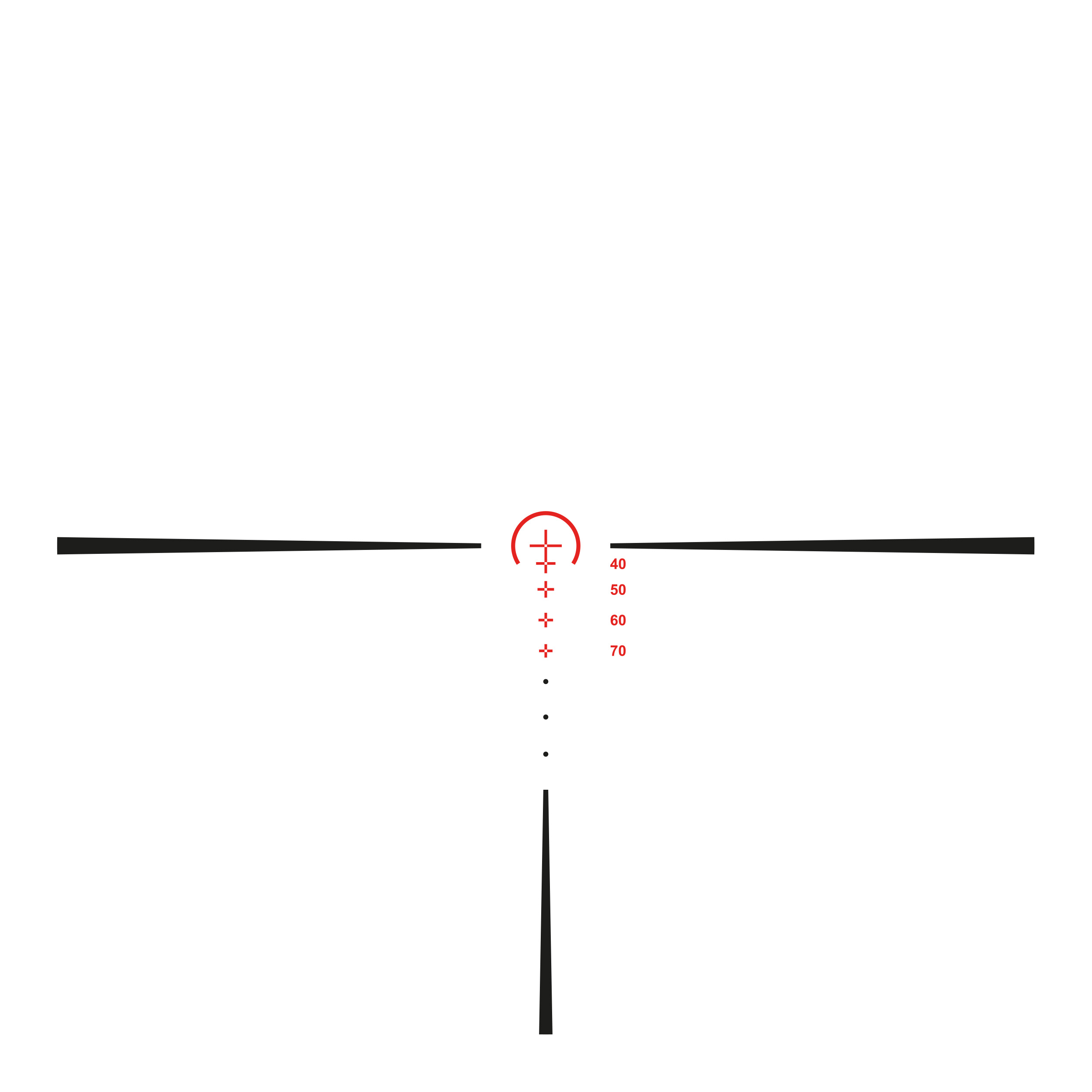 - Podświetlana siatka celownicza: centralny krzyż i wzór podkowy są podświetlane, co ułatwia celowanie w warunkach słabego oświetlenia.