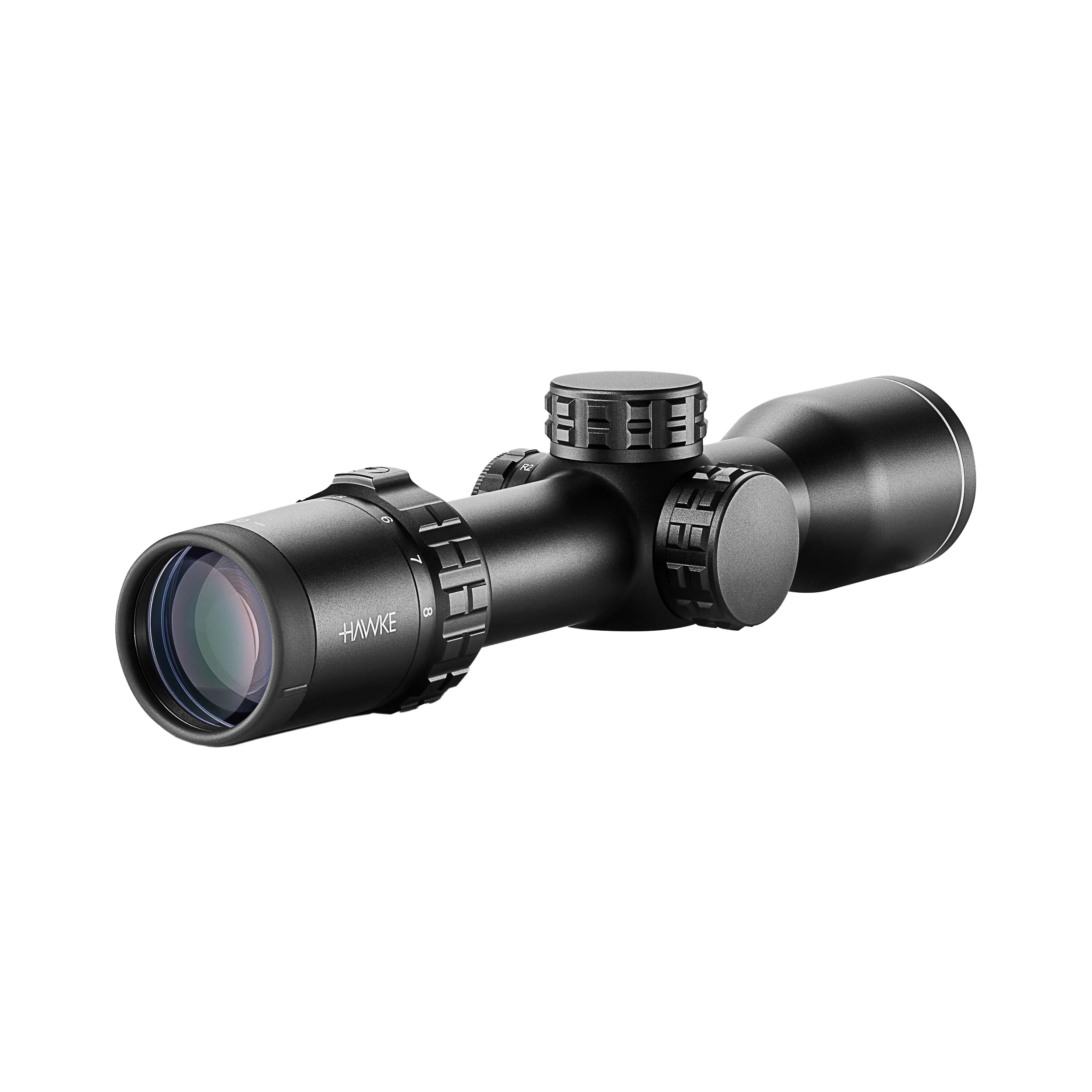 Kompaktowa luneta celownicza Hawke XB30 Crossbow Zoom 2-8 × 36 do kusz bloczkowych, z podświetlaną siatką celowniczą XB30 Zoom FFP, wielowarstwową optyką zapewniającą jasny i ostry obraz celu oraz blokowanym pierścieniem powiększenia i FPS, dzięki czemu celownik jest kompatybilny z kuszami o prędkości początkowej 425-465 fps.