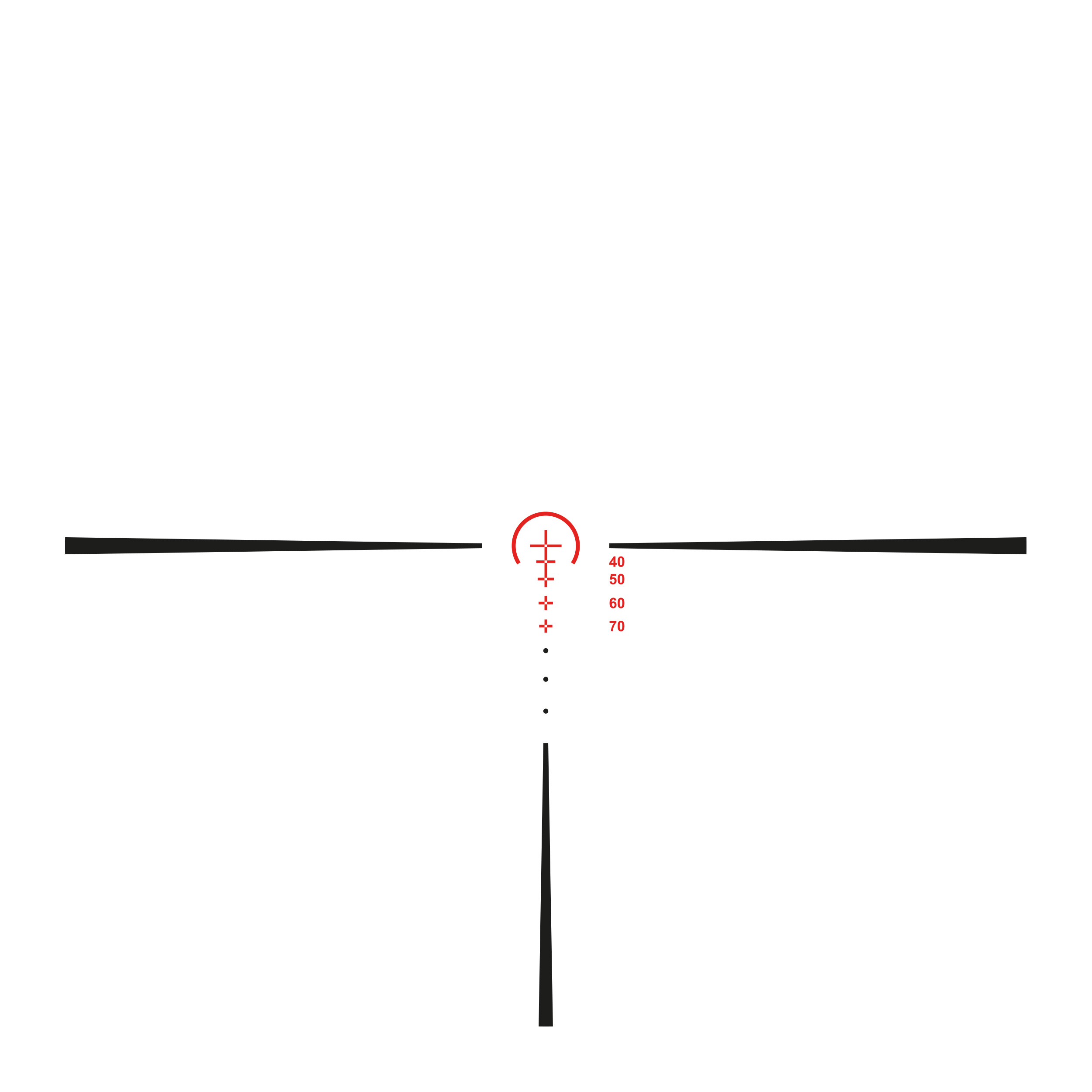 - Podświetlana siatka celownicza: centralny krzyż i wzór podkowy są podświetlane, co ułatwia celowanie w warunkach słabego oświetlenia.