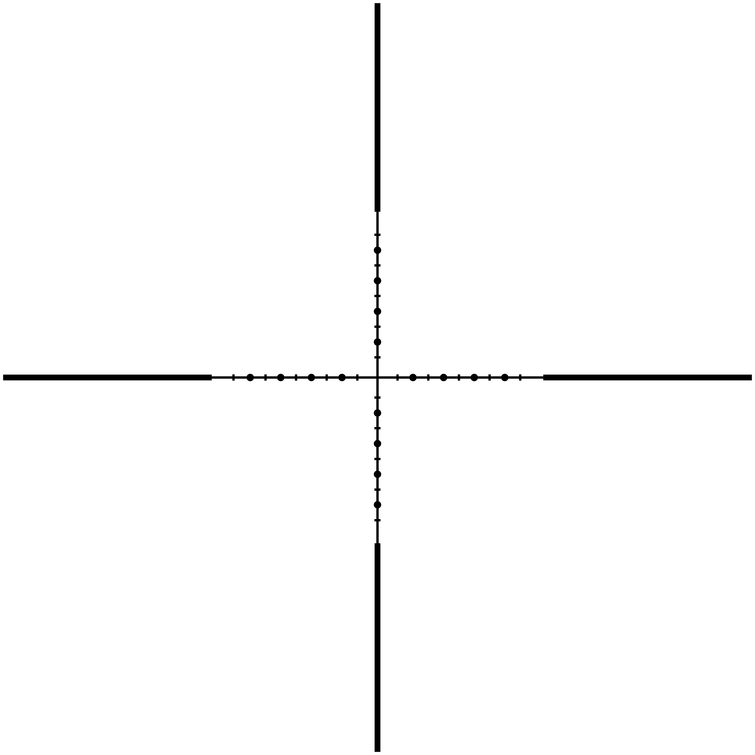 - Osadzony w drugim planie krzyż o prostej, uniwersalnej siatce Half Mil Dot