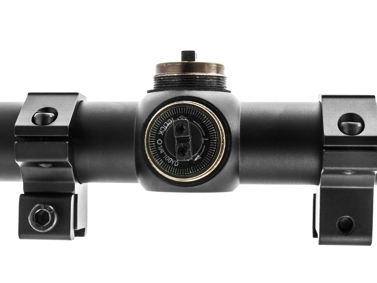 Luneta celownicza Leapers UTG 4×32 przeznaczona do strzelectwa sportowego, dysponująca stałym powiększeniem 4x. Posiada regulację krzyża w pionie i w poziomie oraz paralaksę ustawioną na dystansie 35 yardów. Przesunięcie przy jednym przeskoku pokrętła regulacji krzyża 1/4”/100 yardów.