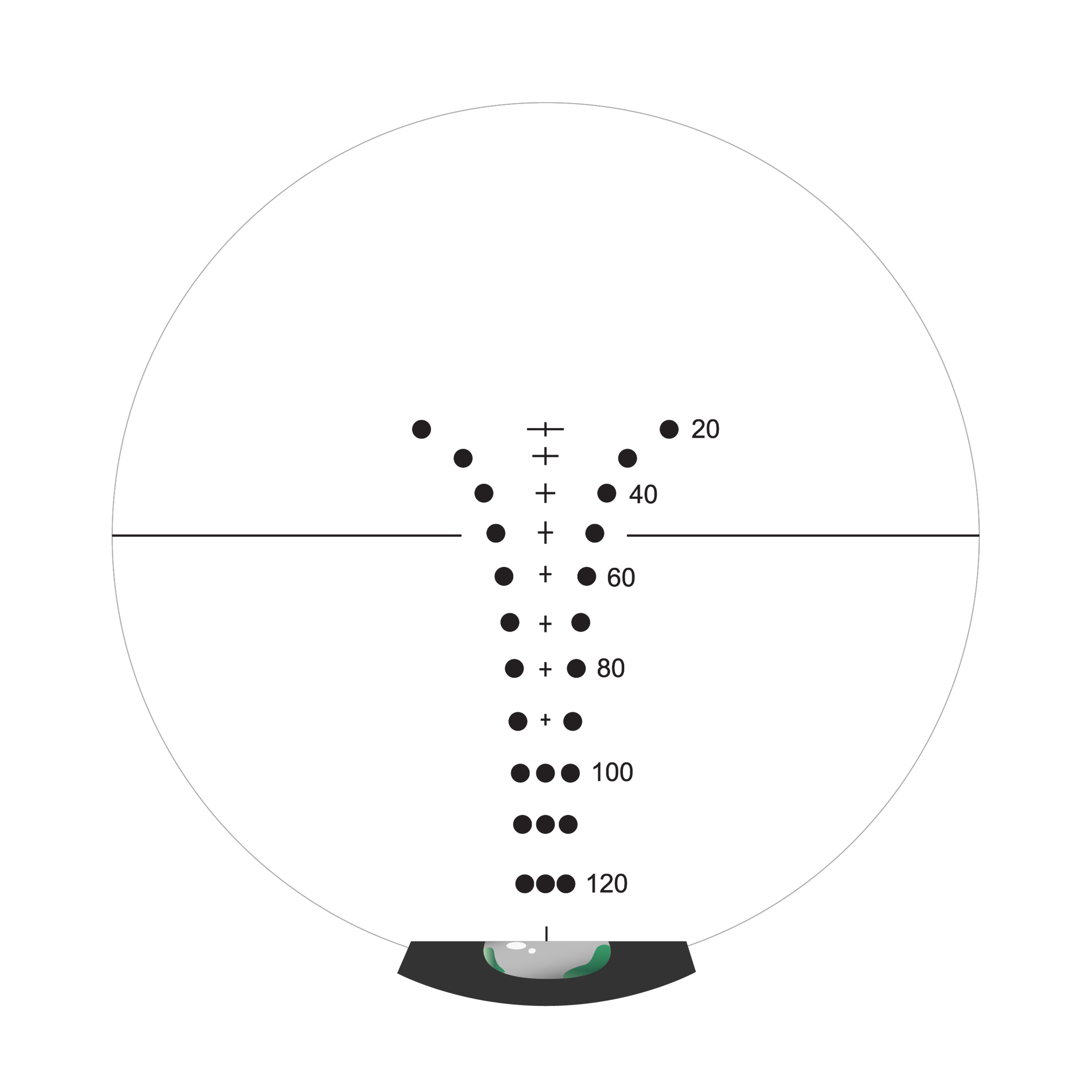 - Funkcjonalna siatka celownicza: Siatka 130 Hunter BDC w drugim planie (Second Focal Plane) z systemem podświetlenia EZ-TAP w kolorach czerwonym i zielonym z 7 poziomami intensywności, który wzmacnia widoczność znaczników BDC (Bullet Drop Compensating). Luneta zapamiętuje ostatnio wybrany kolor podświetlenia. Źródłem zasilania jest bateria CR1632.