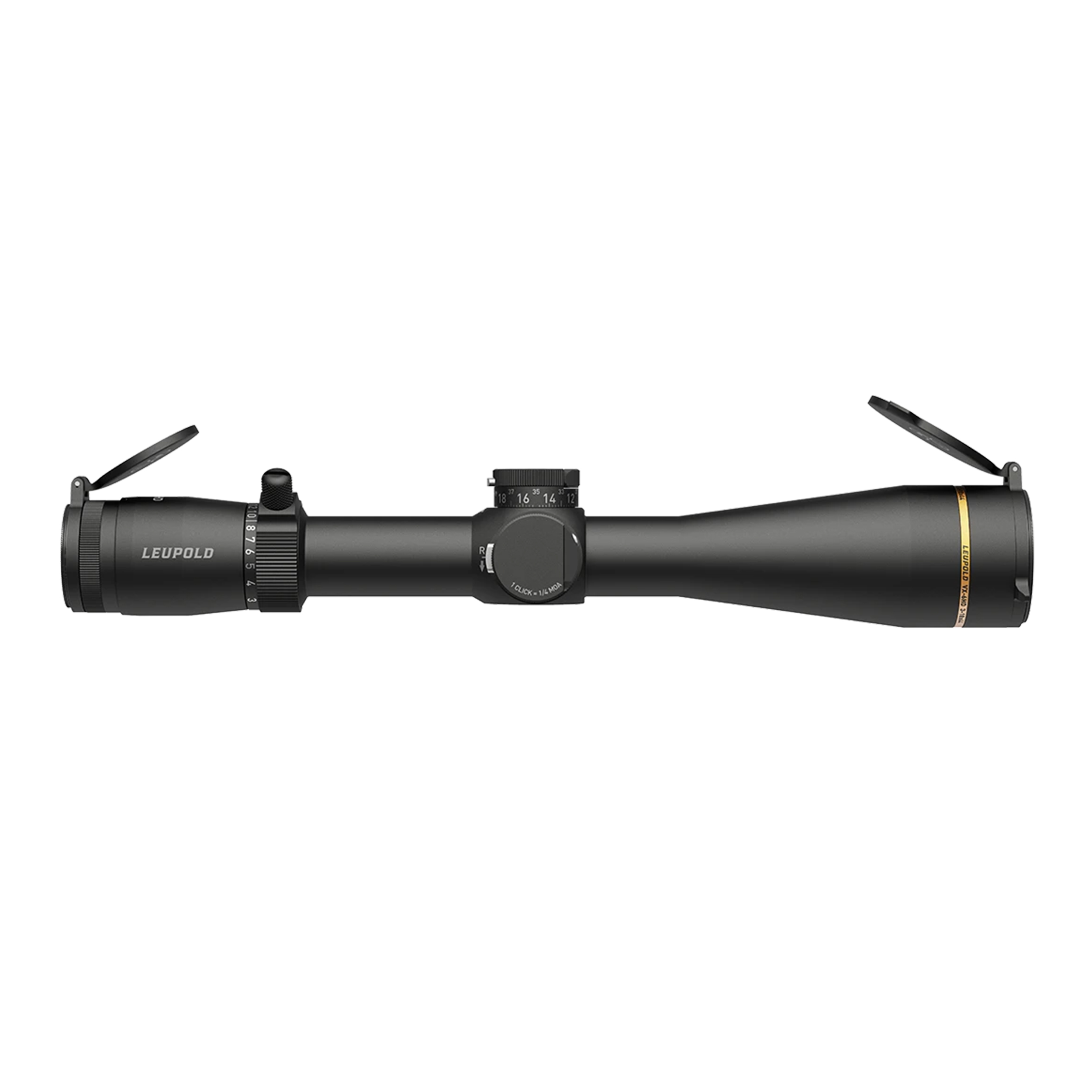 Powiększone oznaczenia bębnów w kontrastowym białym kolorze — ułatwiają zmianę ustawień w słabym świetle, dzięki czemu celowniki Leupold VX-6HD mogą być wykorzystywane od świtu do zmierzchu.