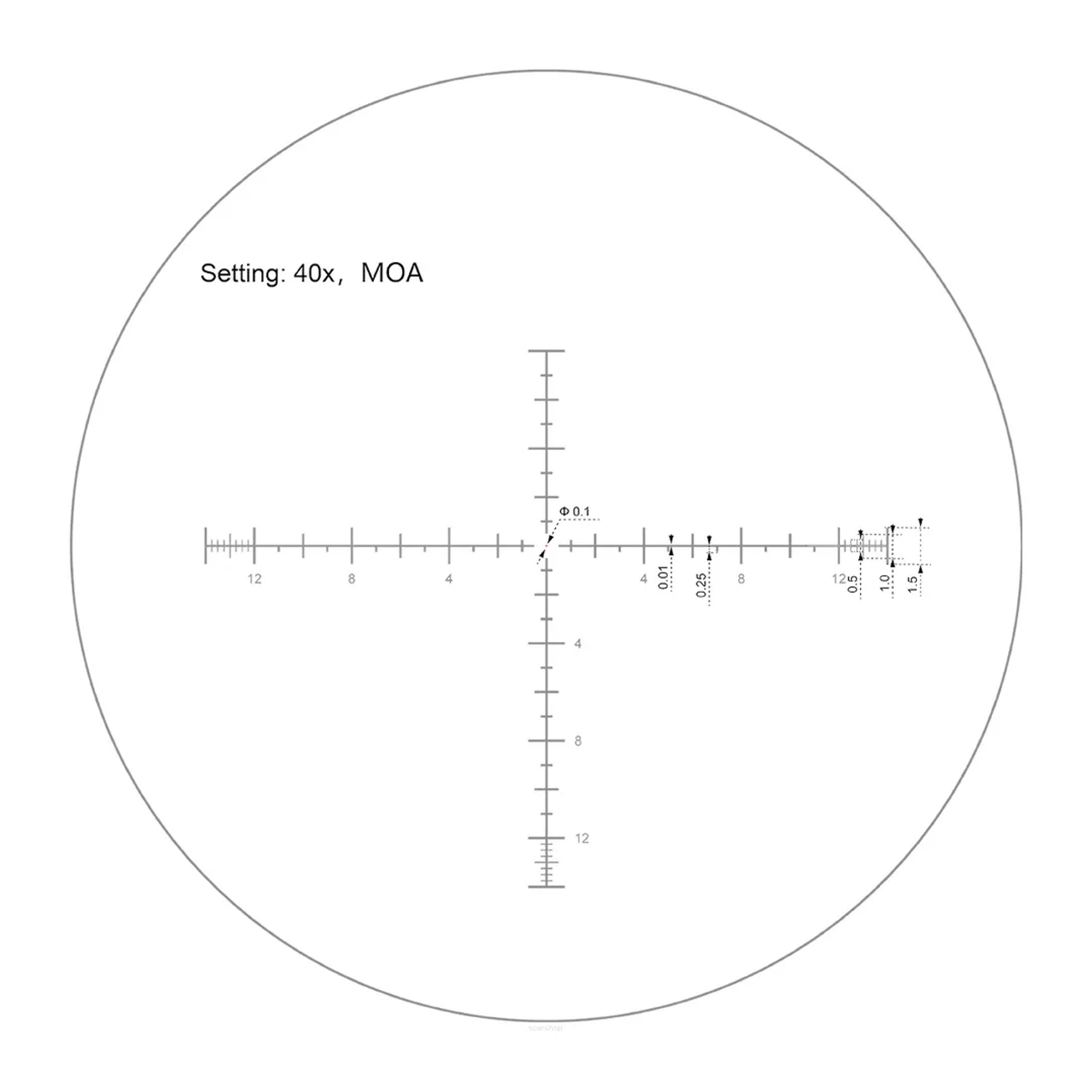 - Podświetlany znak celowniczy VCO-6 MOA: Umieszczony na drugim planie (SFP), zapewnia precyzyjne celowanie niezależnie od powiększenia.
