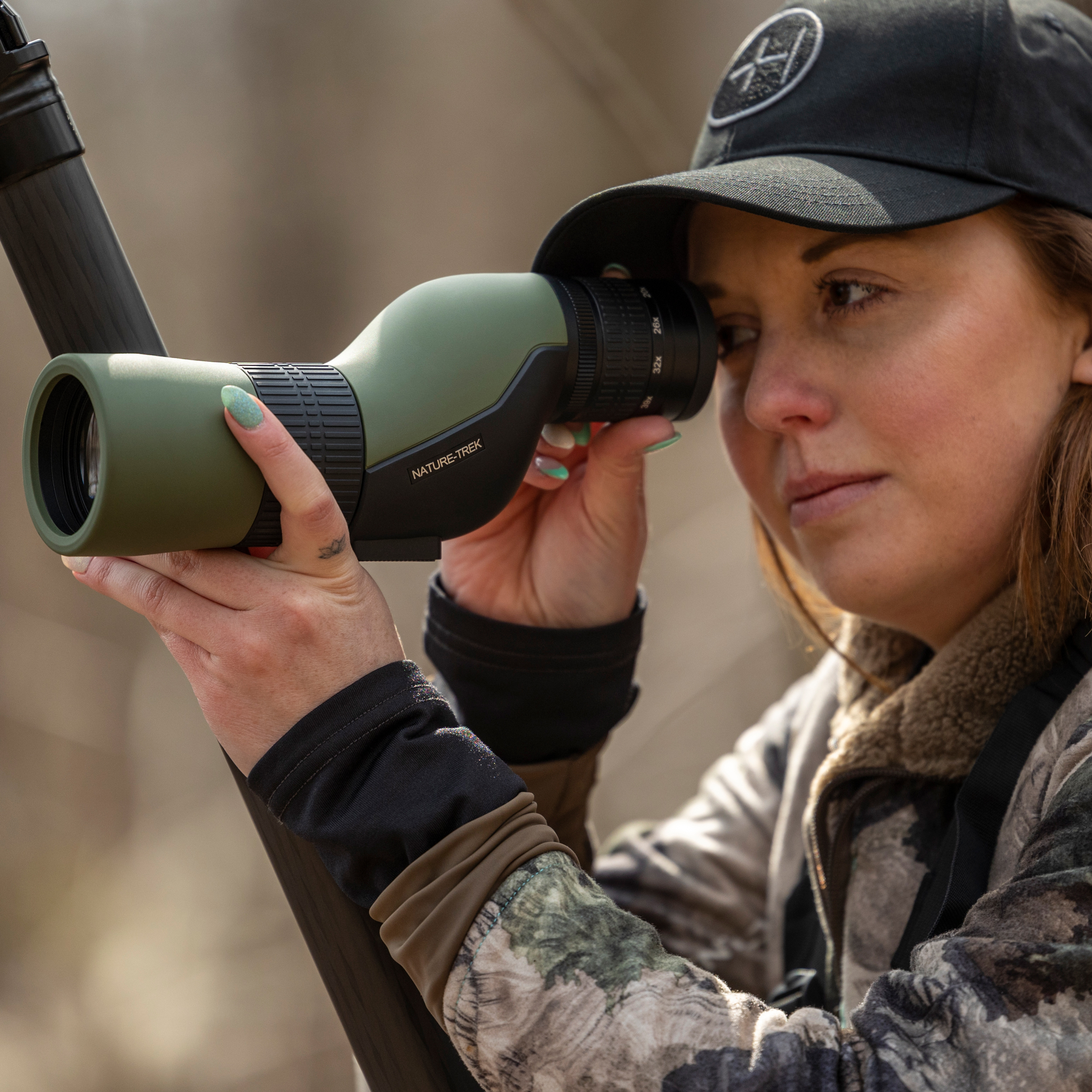 Nature Trek posiada podwójne pokrętło ostrości pozwalające na bardzo precyzyjne ogniskowanie. Model wyposażono w okular z regulowaną muszlą oczną. Sprzęt jest kompatybilny z systemem mocowania aparatów Digi-Spektiv.