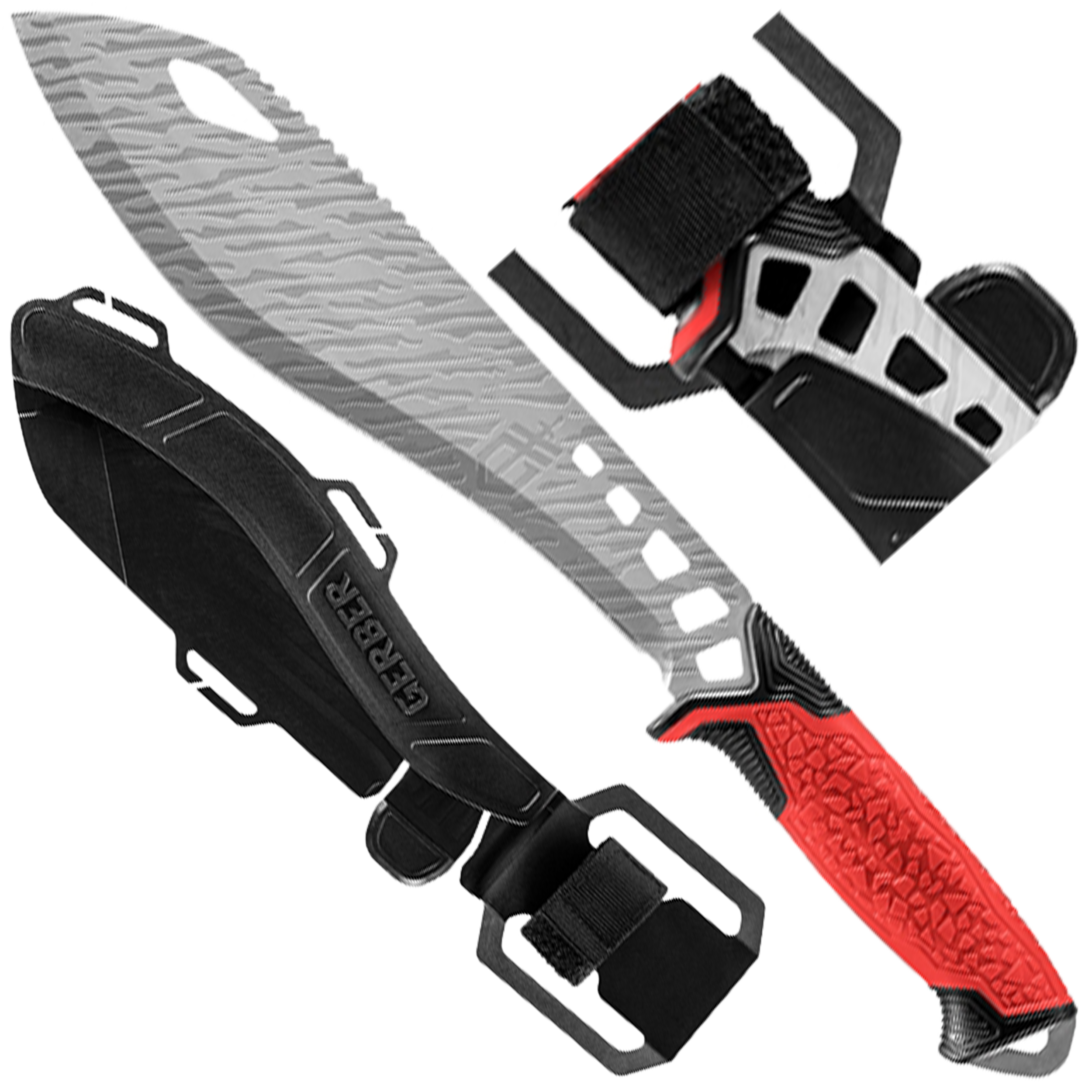 Gerber Versafix Pro red to poręczna maczeta outdoorowa o konstrukcji full tang, wyposażona w szkieletową głownię ze stali nierdzewnej, gumowany chwyt o wspaniałej przyczepności oraz polimerową pochewkę z możliwością mocowania na kilka sposobów.
