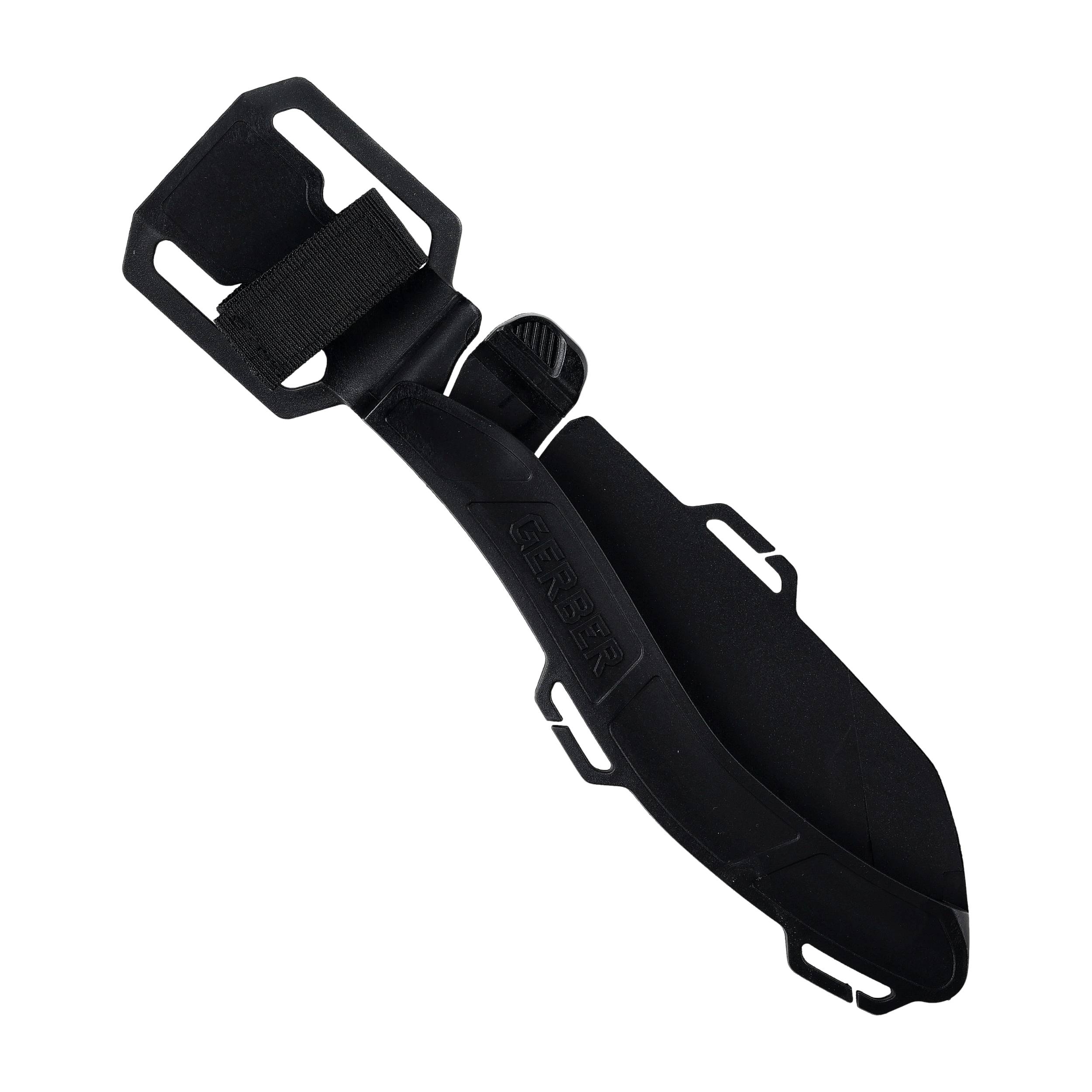 W komplecie znajduje się polimerowa pochewka z blokadą wciskową oraz rozbudowanym systemem montażu pozwalającym na noszenie maczety w kilku pozycjach.