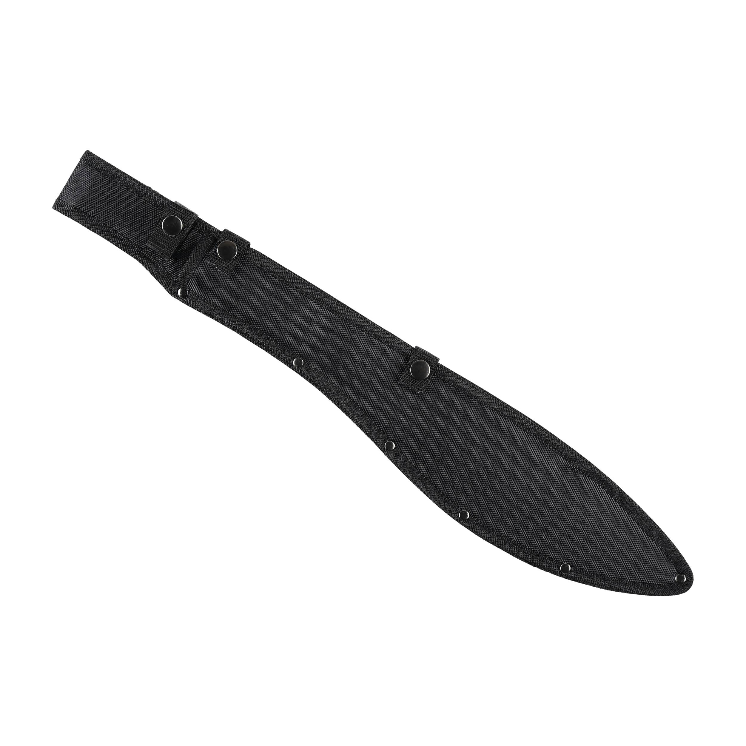 W zakończeniu rękojeści znajduje się otwór przeznaczony na rzemień lub linkę zabezpieczającą. Do bezpiecznego przenoszenia maczety przy pasie służy nylonowa pochewka zapinana na napę. Zastosowany nylon balistyczny to materiał odporny na wilgoć, pleśń oraz uszkodzenia mechaniczne.