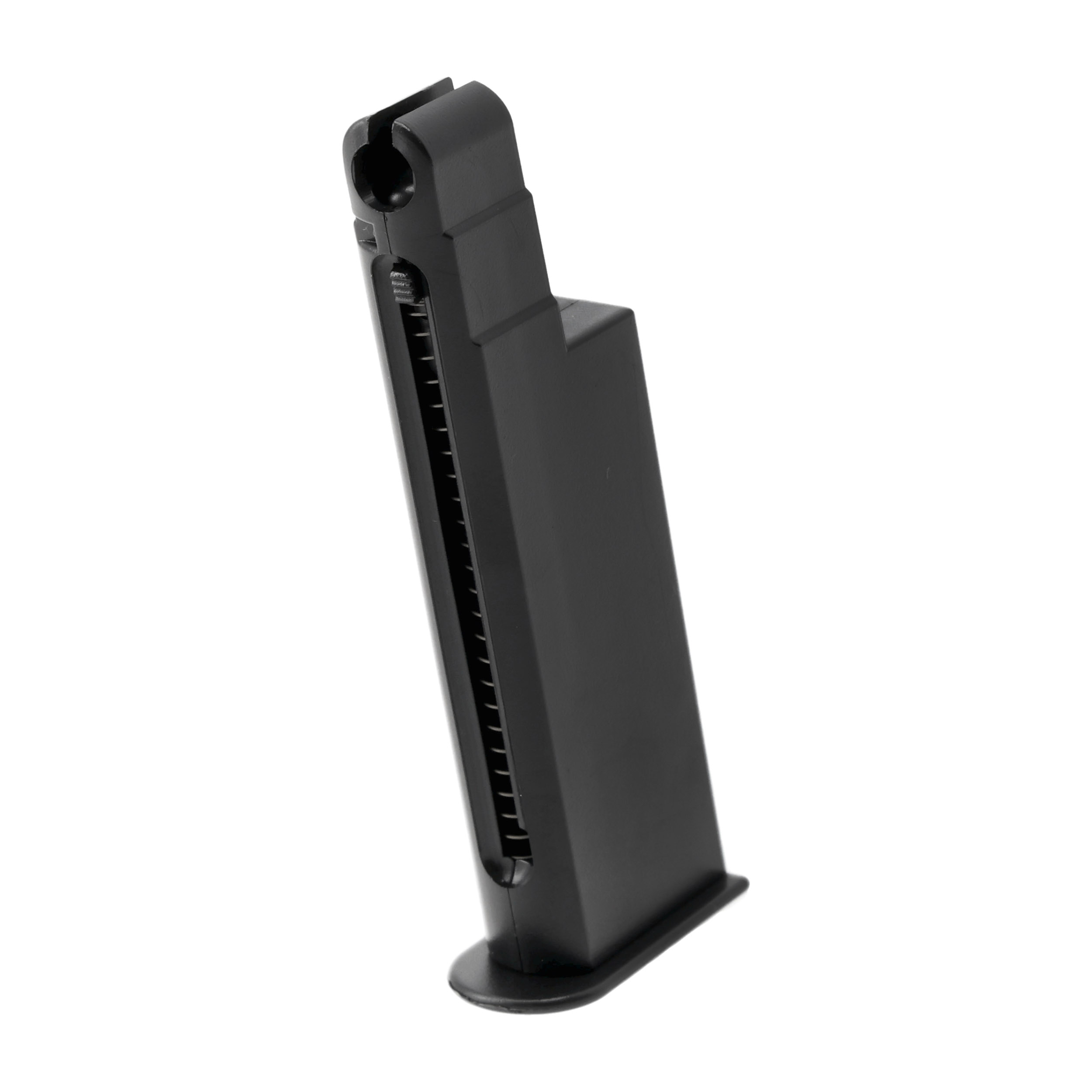 Zapasowy magazynek do repliki pistoletu Walther PPK/S o pojemności 23 kulek 6 mm. Magazynek jest kompatybilny wyłącznie ze wspomnianą repliką. Wyposażono go w ząbkowaną krawędź donośnika, ułatwiającą jego załadowanie. Model jest wykonany z połączenia polimeru i metalu (sprężyna donośnika).