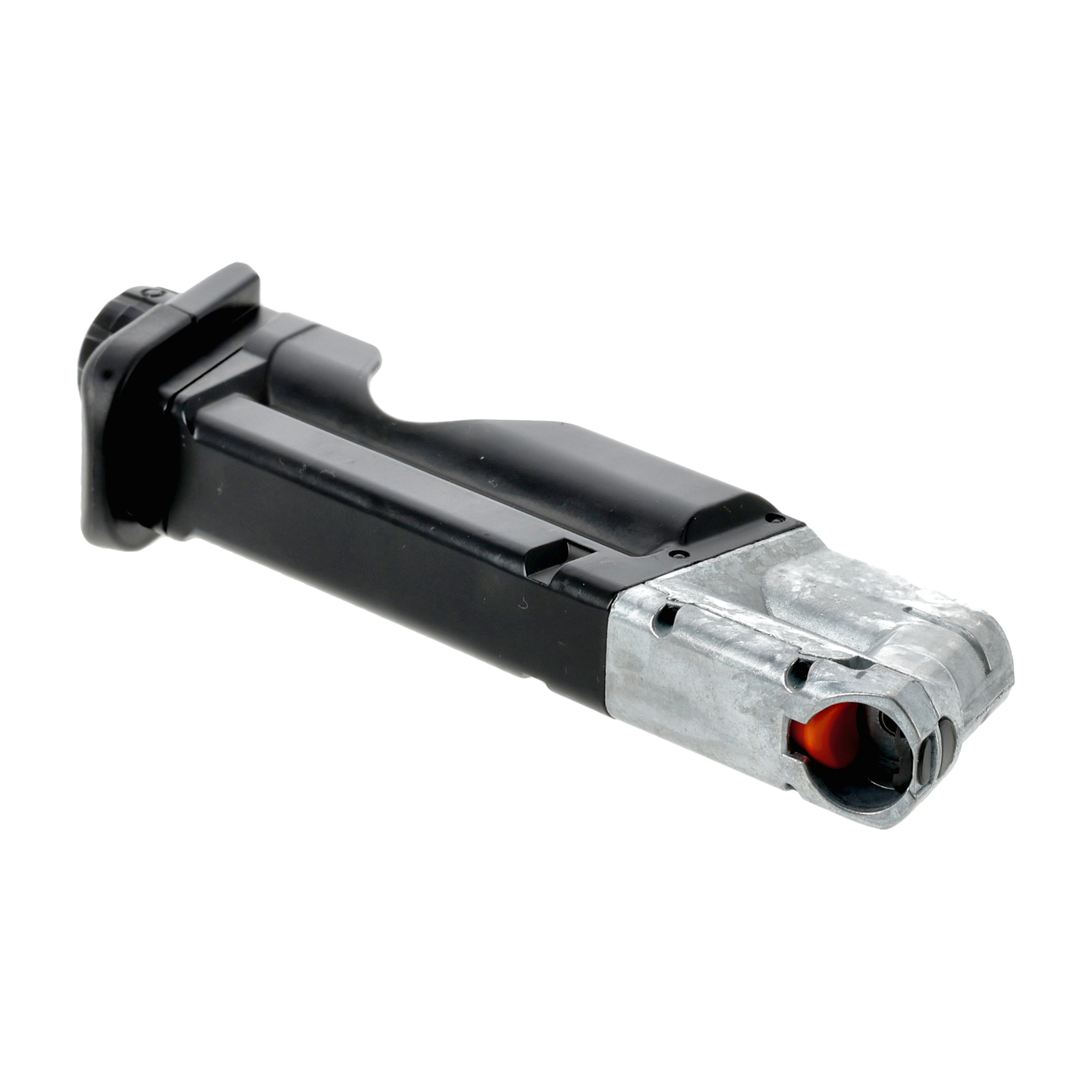 Korpus magazynka jest metalowy, z polimeru wykonano stopkę oraz blokowany podajnik kul. Wewnątrz magazynka mieści się przedział na kapsułę CO2. W dolnej części znajduje się powiększony przycisk służący do szybkiego przebicia kapsuły zamontowanej w magazynku. Gaz CO2 uwalnia się dopiero po mocnym wciśnięciu wystającego trzpienia. Dzięki takiej funkcjonalności, w magazynku możemy bezpieczenie przenosić kapsułę (nieprzebitą) i w razie zagrożenia błyskawicznie przygotować markera do działania.