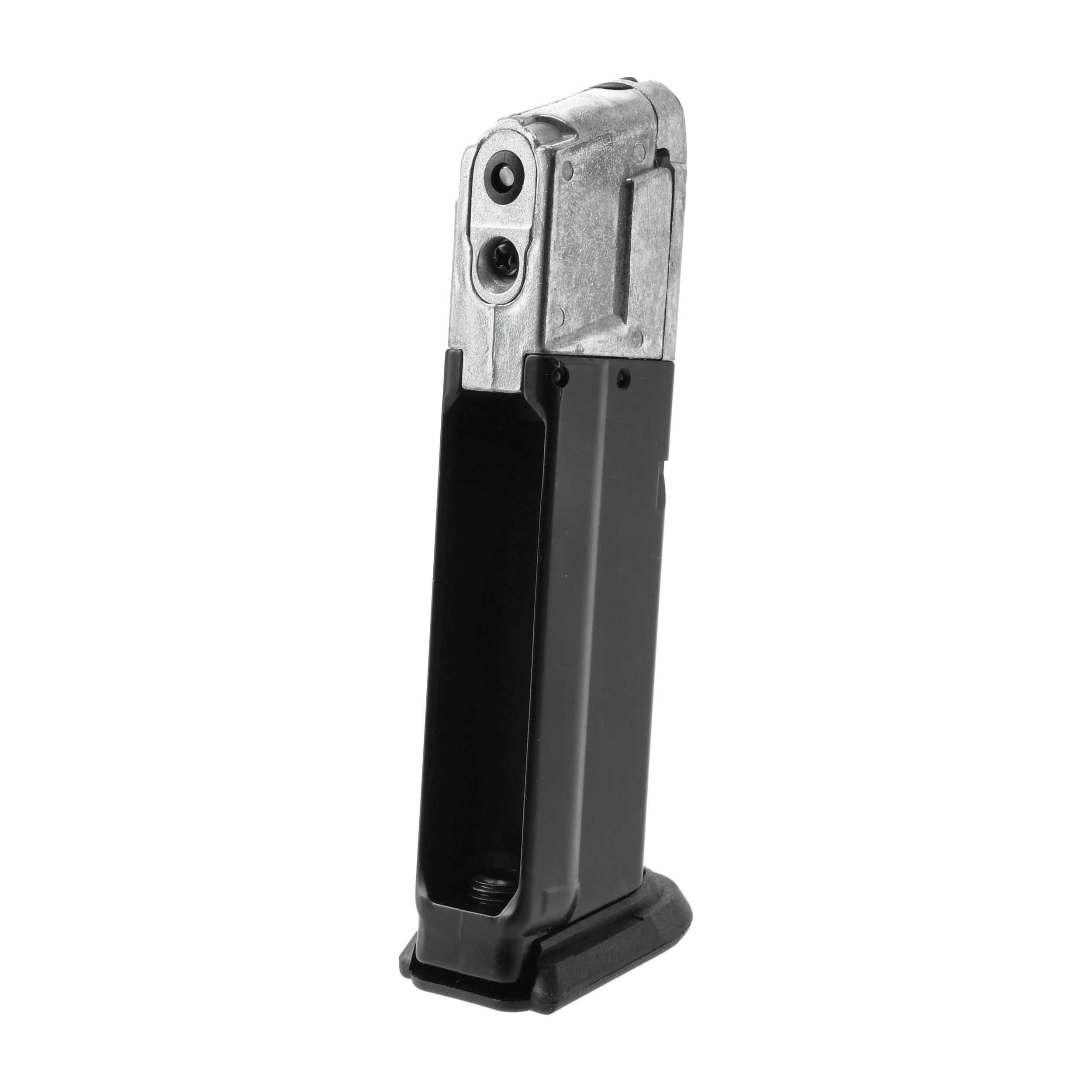 Korpus magazynka jest metalowy, z polimeru wykonano stopkę oraz blokowany podajnik kul. Wewnątrz magazynka znajduje się przedział na kapsułę CO2.