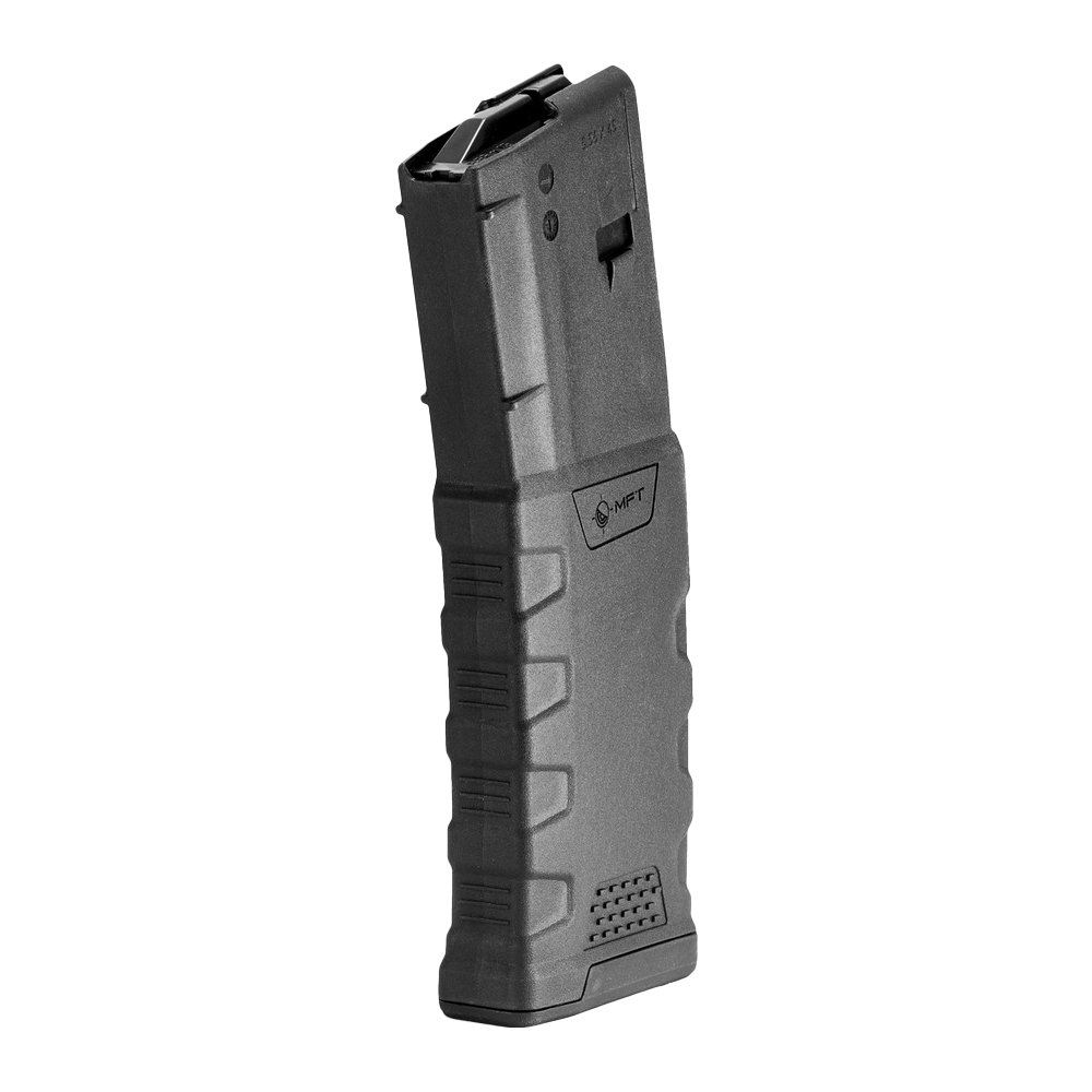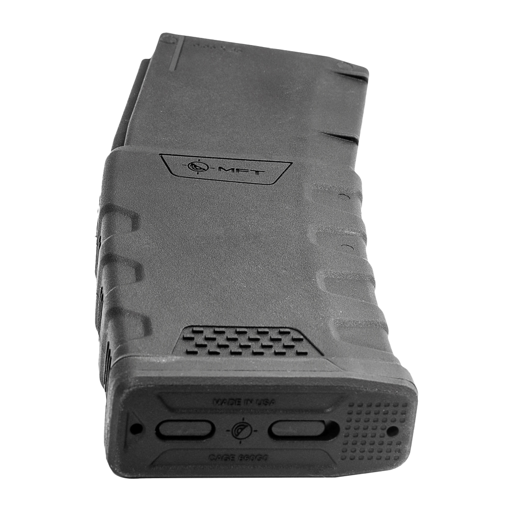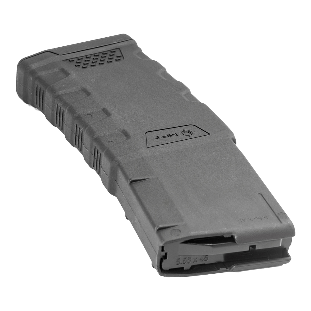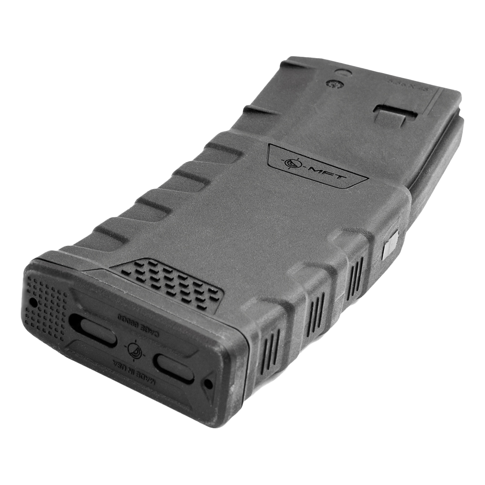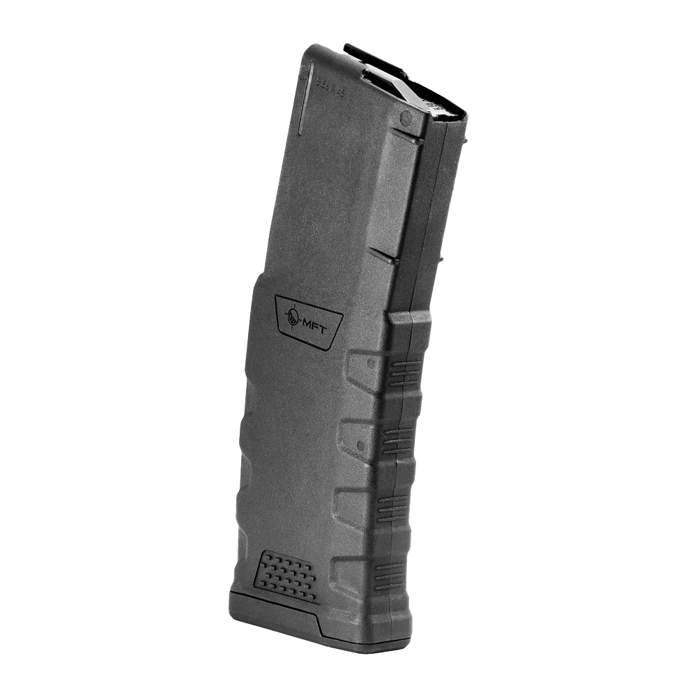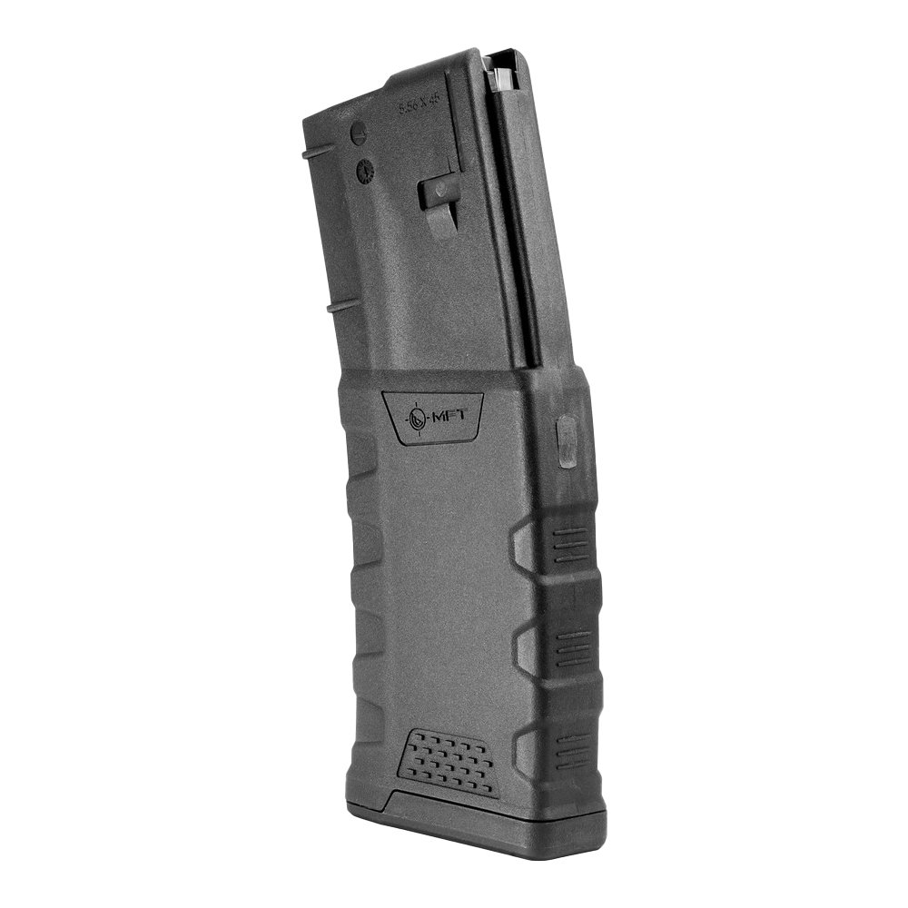 Magazynek MFT Extreme Duty wyposażony został w szereg rozwiązań ułatwiających dobycie i obsługę. Stopka otrzymała specyficzny kształt, który z jednej strony poszerza ją, ułatwiając wyjęcie z głębokiej ładownicy, z drugiej natomiast zachowuje niski profil, dzięki czemu nie będzie uciążliwy podczas przechodzenia do pozycji leżącej w kamizelce. Teksturowana powierzchnia ścianek okaże się natomiast przydatna przy niskich ładownicach retencyjnych wykorzystywanych w zastosowaniach sportowych. Dzięki zastosowaniu matrycy na dole magazynka będziemy mogli z łatwością opisać go przy pomocy pisaka.