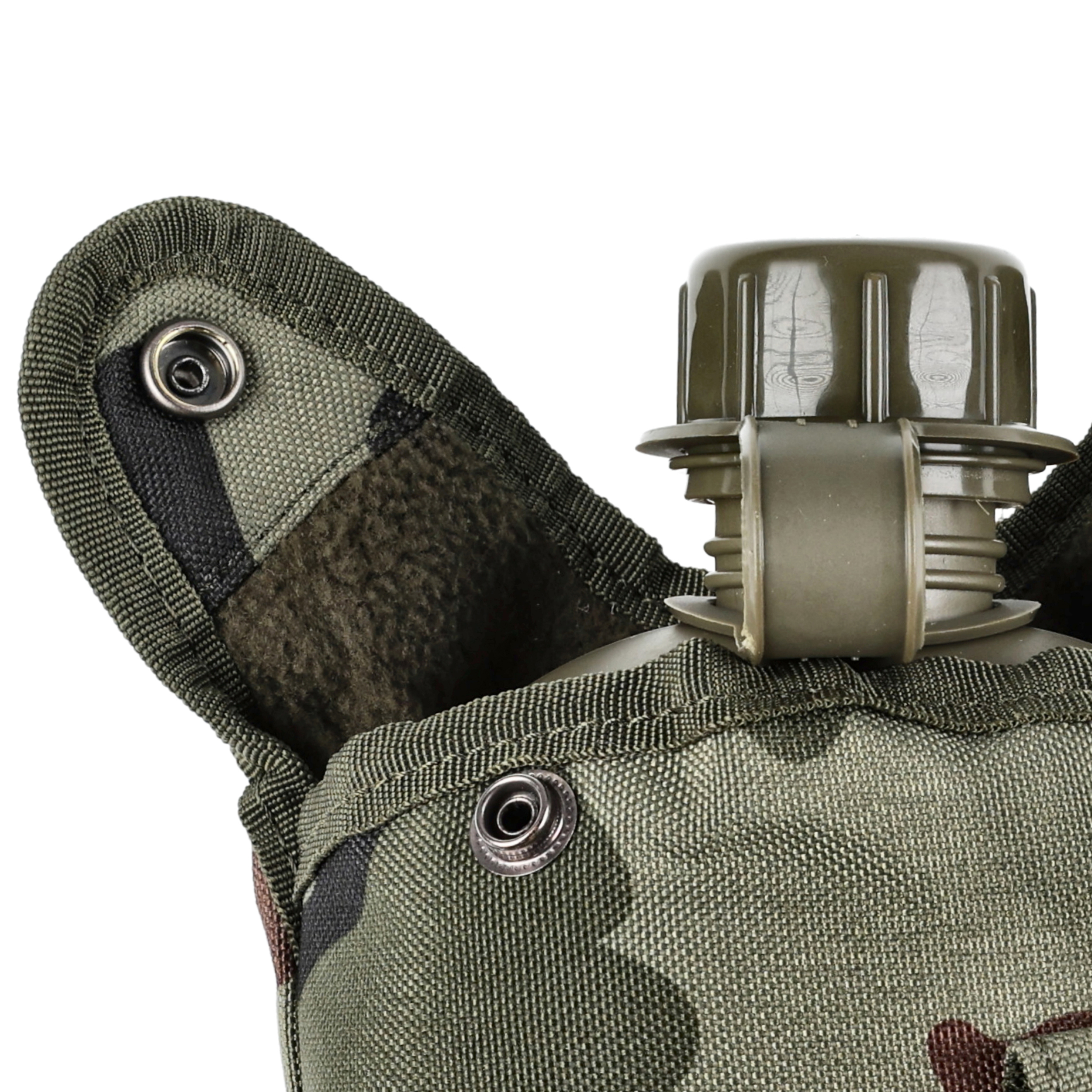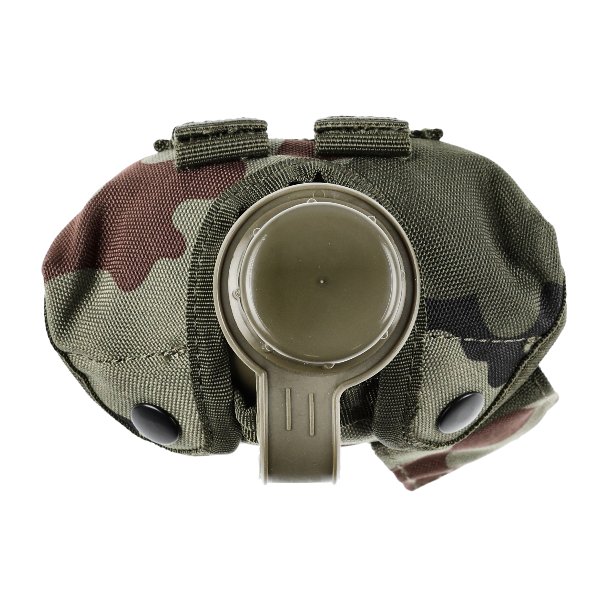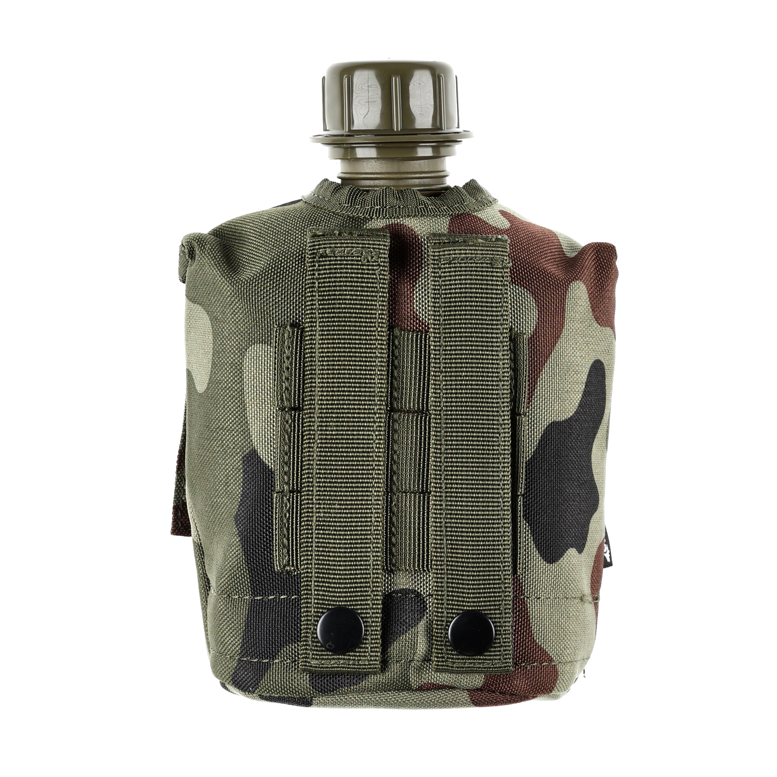 Manierka wojskowa US o pojemności 1L z pokrowcem w kamuflażu wz. 93 od firmy Texar. Manierka przystosowana do przenoszenia na pasie w systemie Alice.