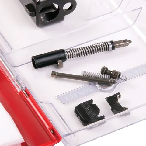 - Wykonane z polimeru skrobaki pozwalające na czyszczenie trudnych zabrudzeń bez ryzyka uszkodzenia broni