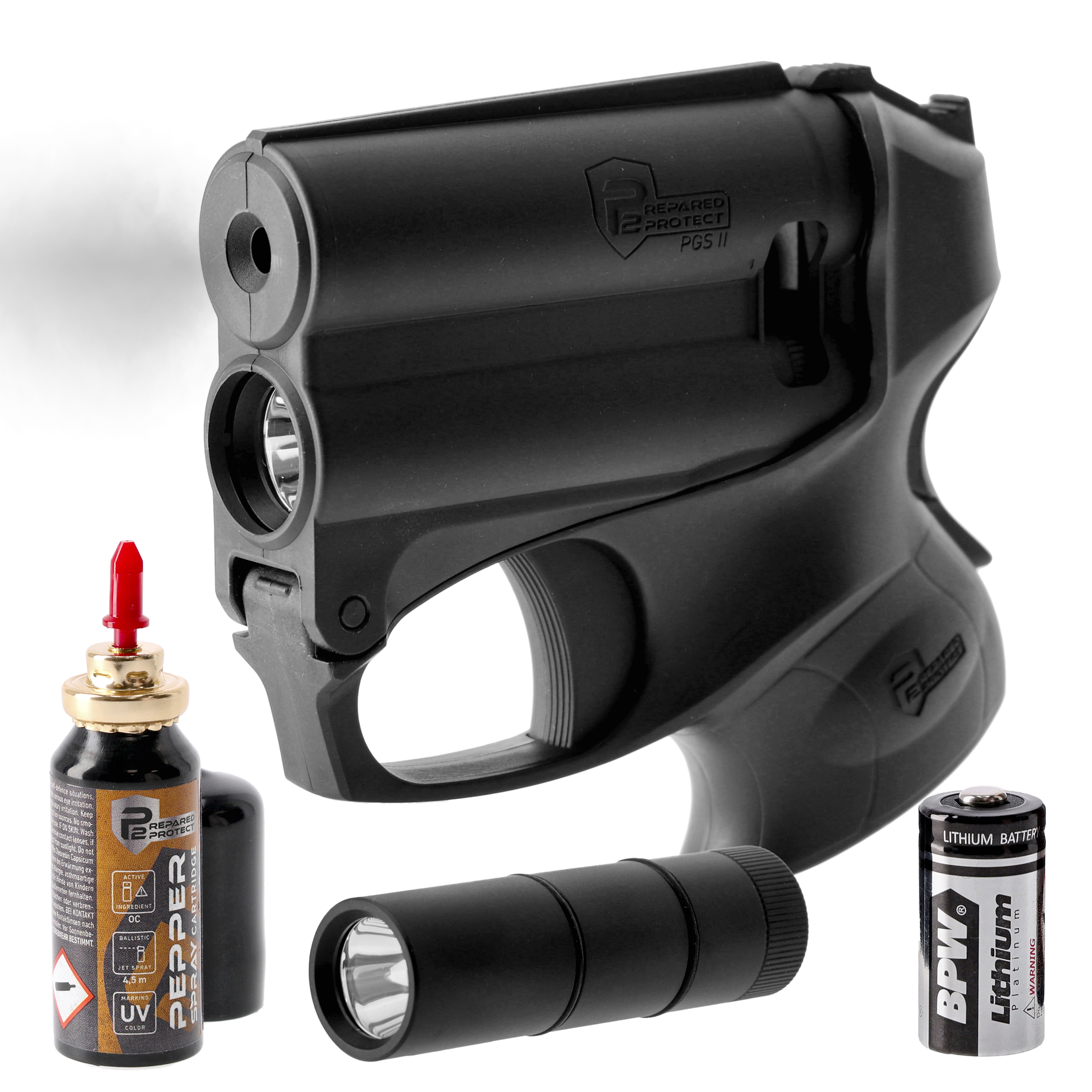 Miotacz gazu pieprzowego P2P PGS II KIT z latarką, czarny