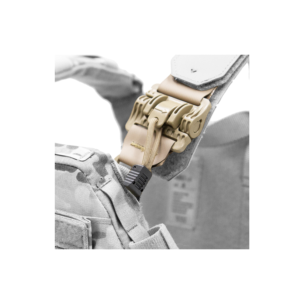 Zapięcia ramion Husar ROC QD (lewe) umożliwiają szybkie wpięcie kamizelki. Zapięcie zaprojektowano specjalnie dla szelek Noble Plate Carrier. Tego typu rozwiązanie przyśpiesza zakładanie oraz zdejmowanie kamizelki.