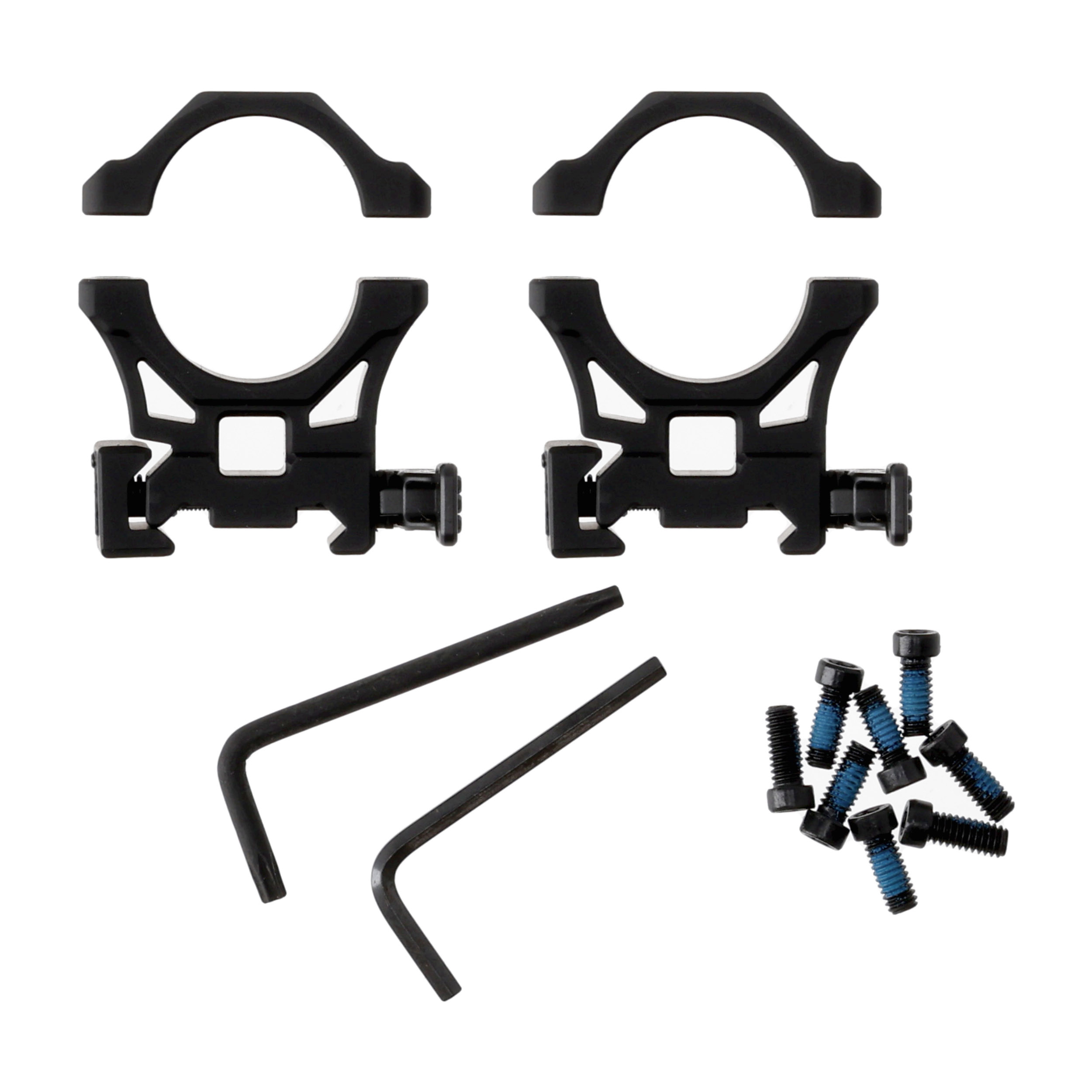 Średni montaż Leapers UTG AQR115 pasuje do lunet celowniczych z tubusem 25,4 mm oraz obiektywem o maksymalnej średnicy zewnętrznej 55 mm. Montaż ma zaokrąglone krawędzie i narożniki, co zapobiega zaczepianiu o elementy wyposażenia oraz ułatwia dostęp do wieżyczek regulacji.