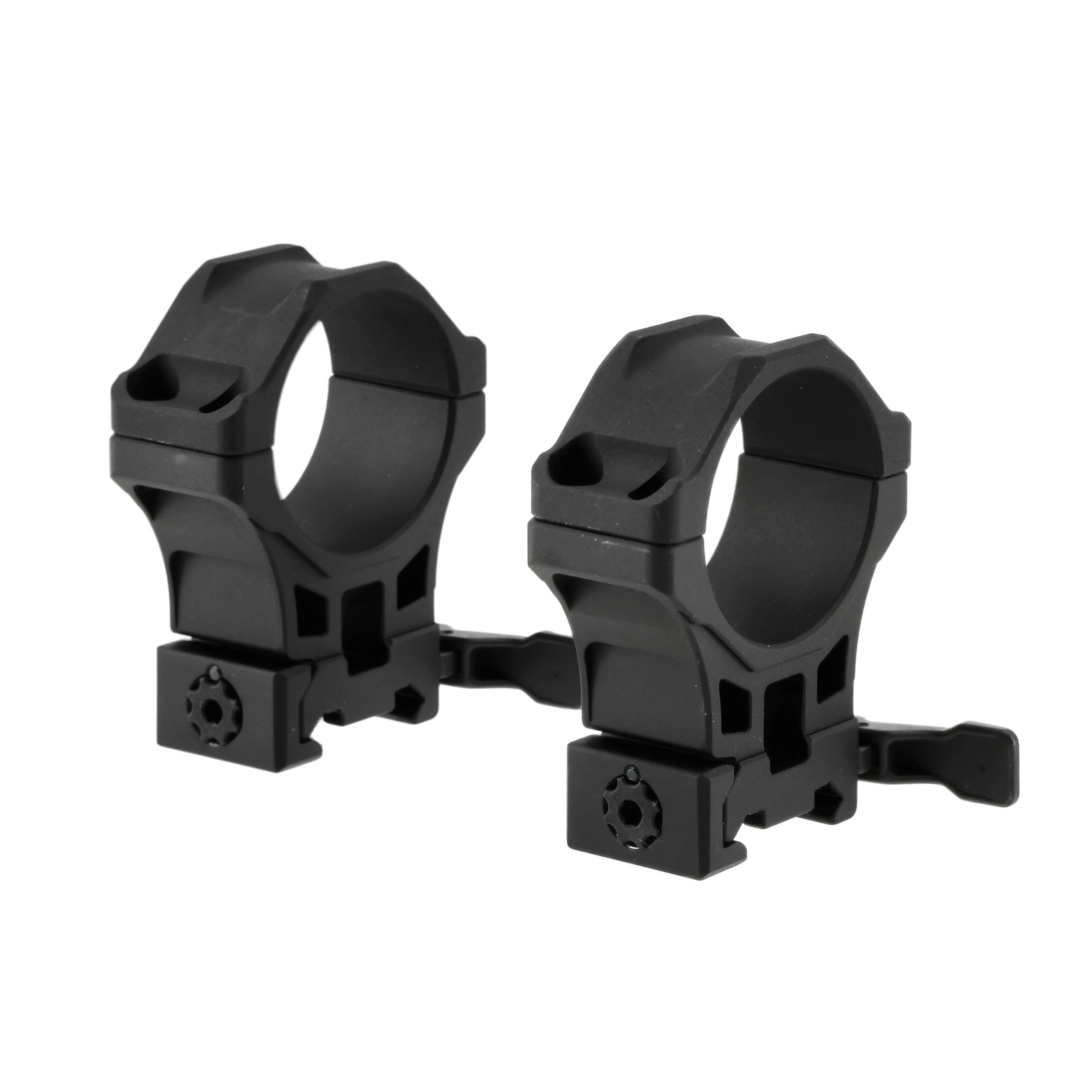 Pierścienie mocujące wykonano metodą CNC z jednego kawałka aluminium. Ze względów estetycznych wszystkie krawędzie i rogi wygładzono. Producent zastosował śruby blokujące Torx oraz prostokątny kołek ryglujący zapewniający utrzymywanie zera. Przewidział również możliwość wygodnej regulacji napięcia obejmy bez użycia narzędzi. Dźwignia QR ułatwia montaż i demontaż obejm.