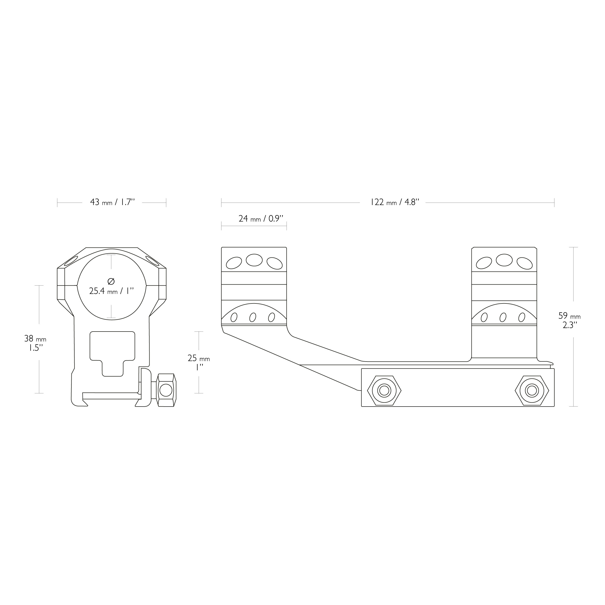 Jednoczęściowy wysoki montaż Hawke Cantilever Tactical AR przeznaczono do lunet o średnicy tubusu wynoszącej jeden cal. Montaż pasuję na szynę Weaver, na której mocuje się go za pomocą dwóch śrub.