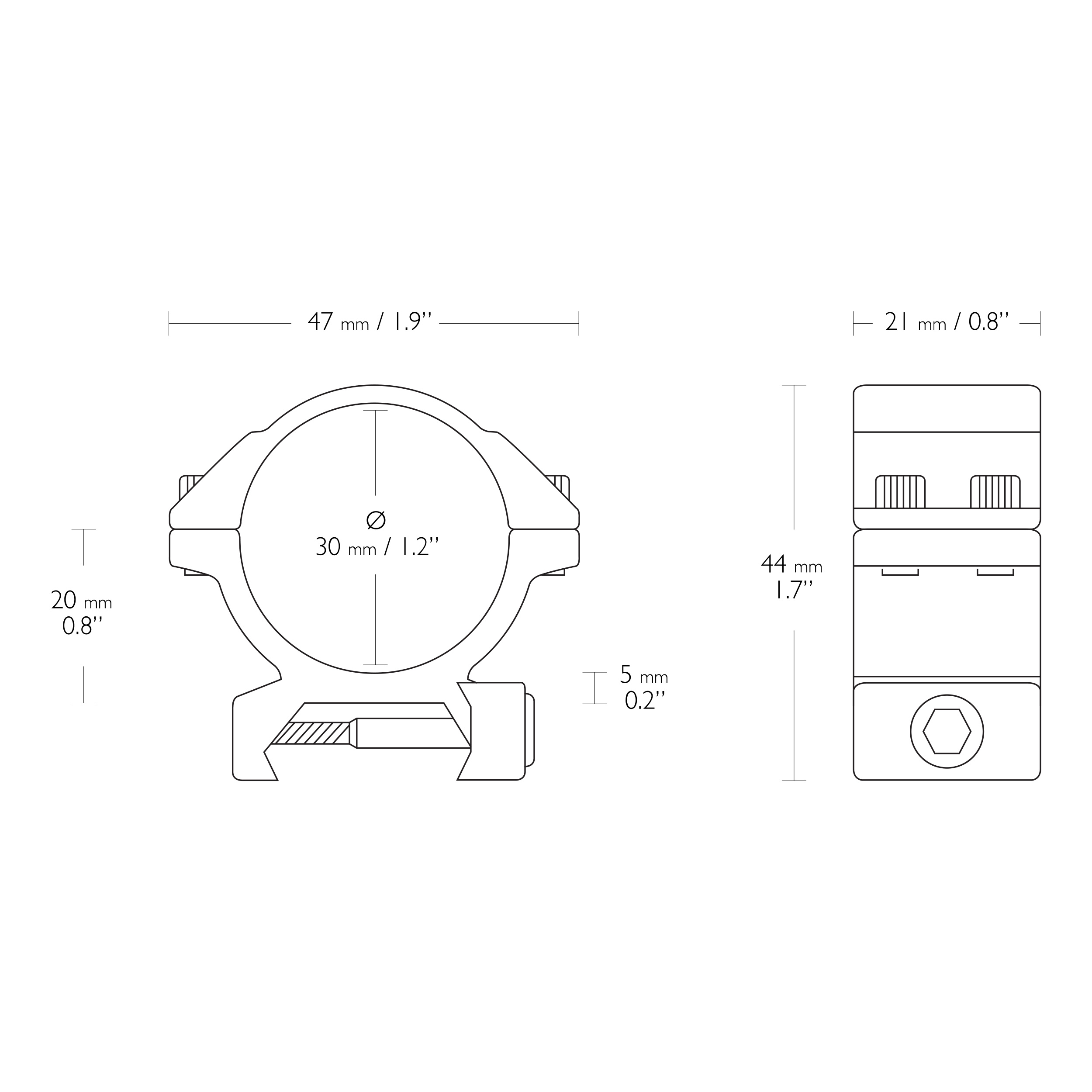 Pierścienie montażowe mocuje się czterema śrubami i dokręca przy użyciu dołączonego klucza. Wytrzymałość na odrzut nawet silnych wiatrówek gwarantują śruby mocujące. Wewnętrzne ściany pierścieni okryto taśmą ochronną, która zapobiega porysowaniu tubusa lunety.