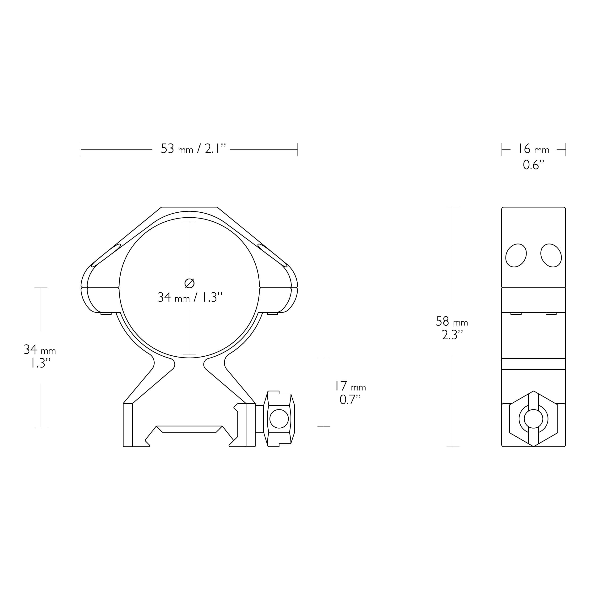 - Montaż dwuczęściowy przeznaczony do tubusów o średnicy 34 mm
