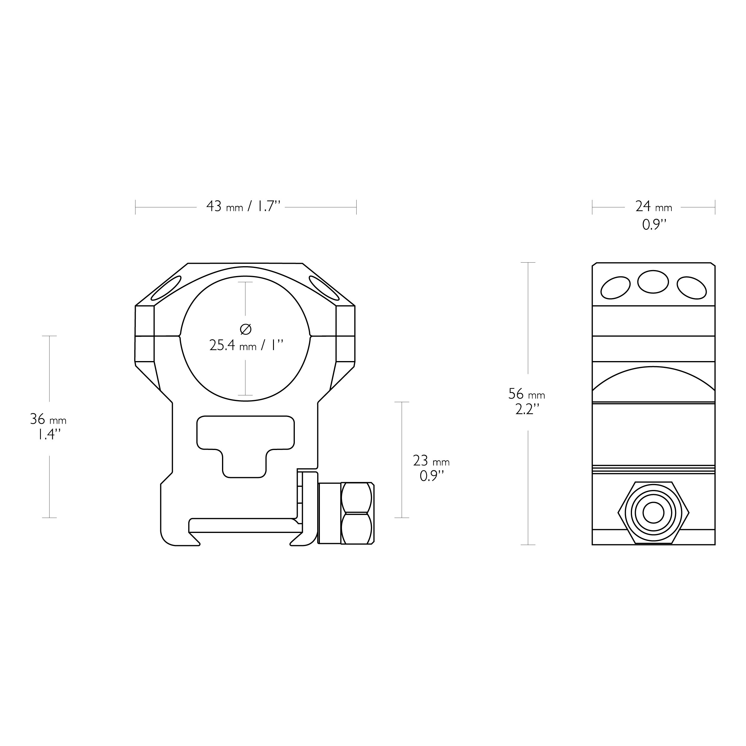 Dwuczęściowy bardzo wysoki montaż Hawke Tactical przeznaczony do lunet o średnicy tubusu wynoszącej 1''. Montaż pasuję na szynę Weaver, na której mocuje się go za pomocą dwóch śrub (każdy z elementów montażu).