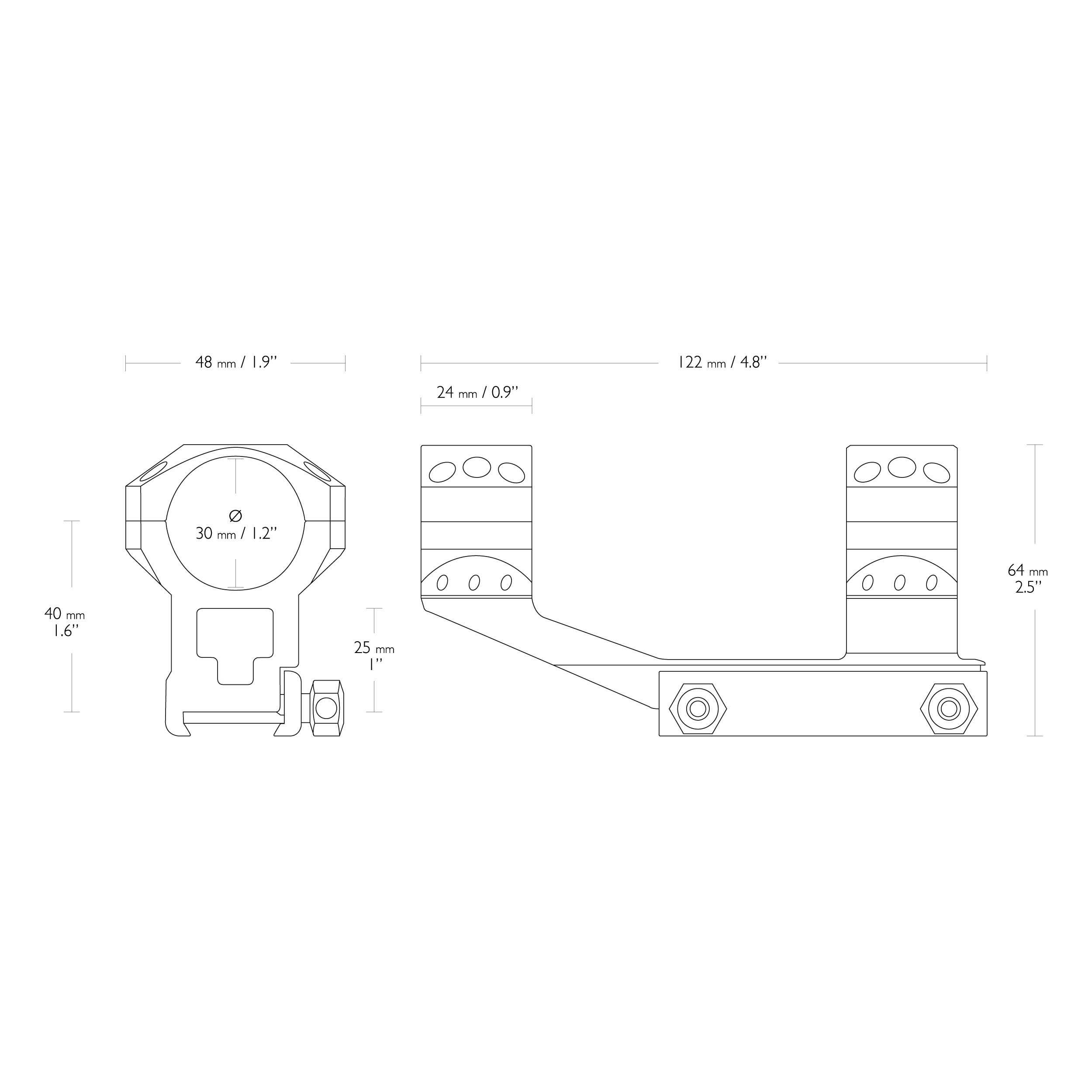 Jednoczęściowy wysoki montaż Hawke Cantilever Tactical AR przeznaczono do lunet o średnicy tubusu wynoszącej 30 mm. Montaż pasuję na szynę Weaver, na której mocuje się go za pomocą dwóch śrub.