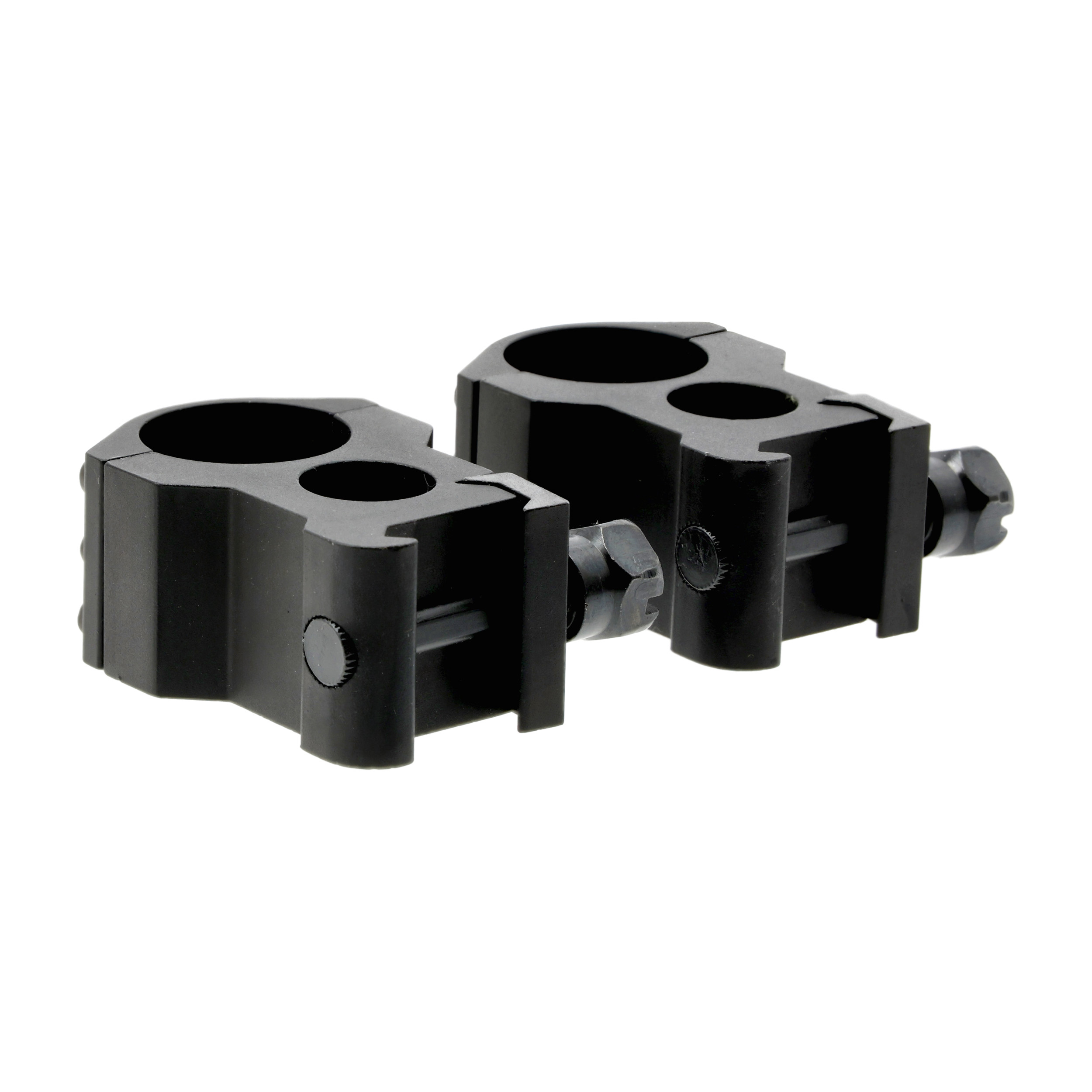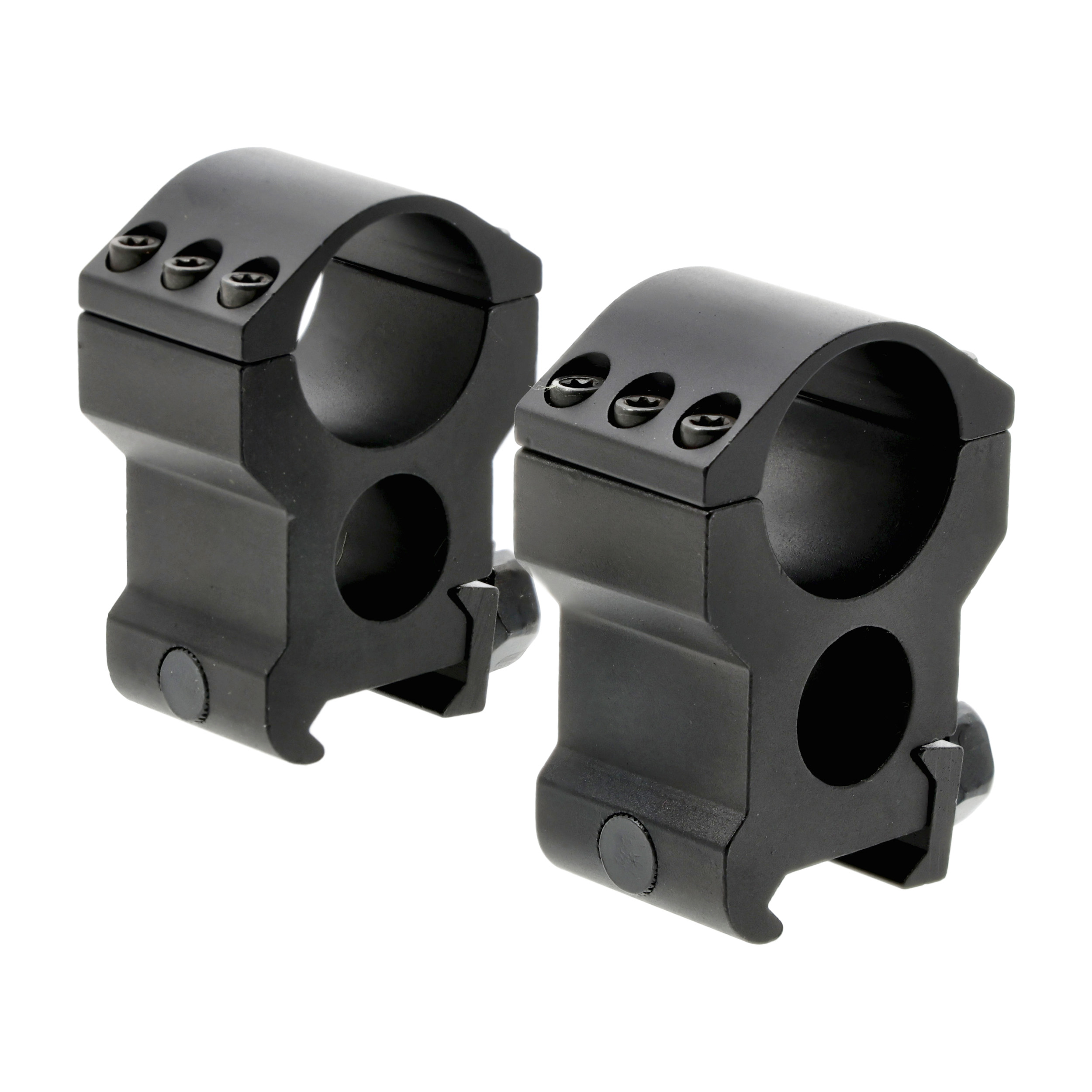 Pierścienie wykonano z anodowanego aluminium. Elementy są lekkie, dlatego nie zwiększą odczuwalnie masy karabinka. Precyzyjna konstrukcja oraz sześć śrub mocujących gwarantują pełną osiowość montażu lunety, stabilne utrzymanie zera oraz odporność na odrzut broni.
