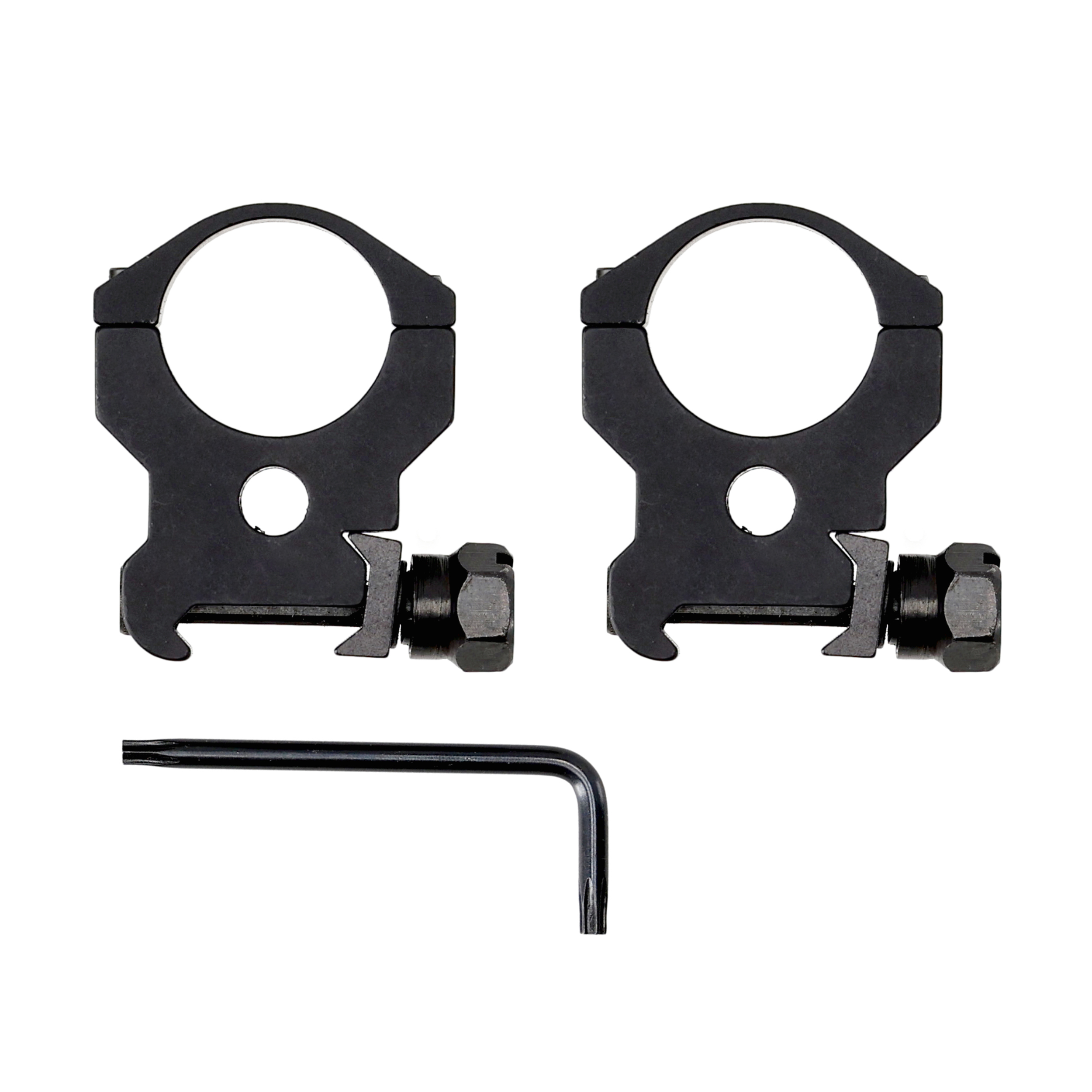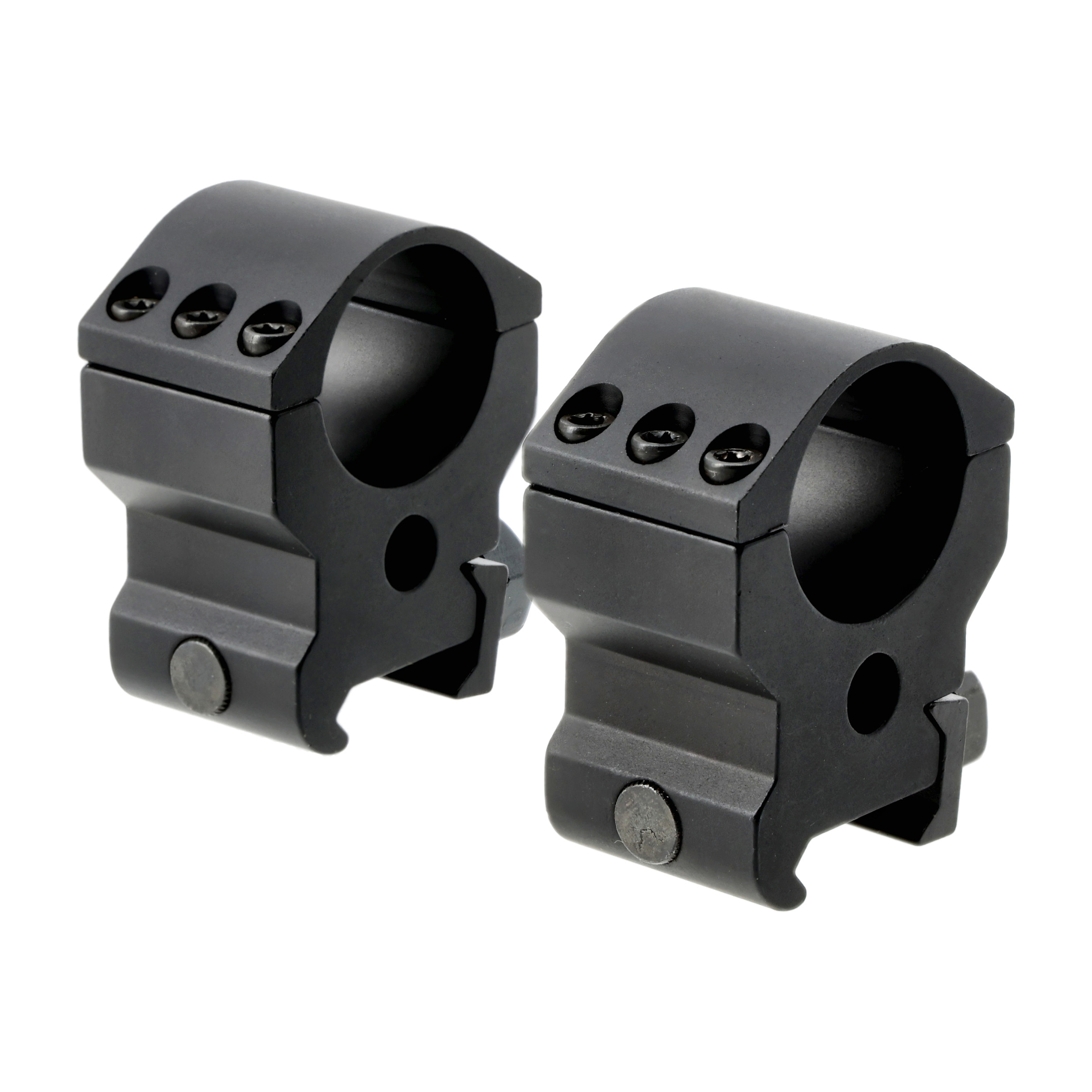 Pierścienie wykonano z anodowanego aluminium. Elementy są lekkie, dlatego nie zwiększą odczuwalnie masy karabinka. Precyzyjna konstrukcja oraz sześć śrub mocujących gwarantują pełną osiowość montażu lunety, stabilne utrzymanie zera oraz odporność na odrzut broni.