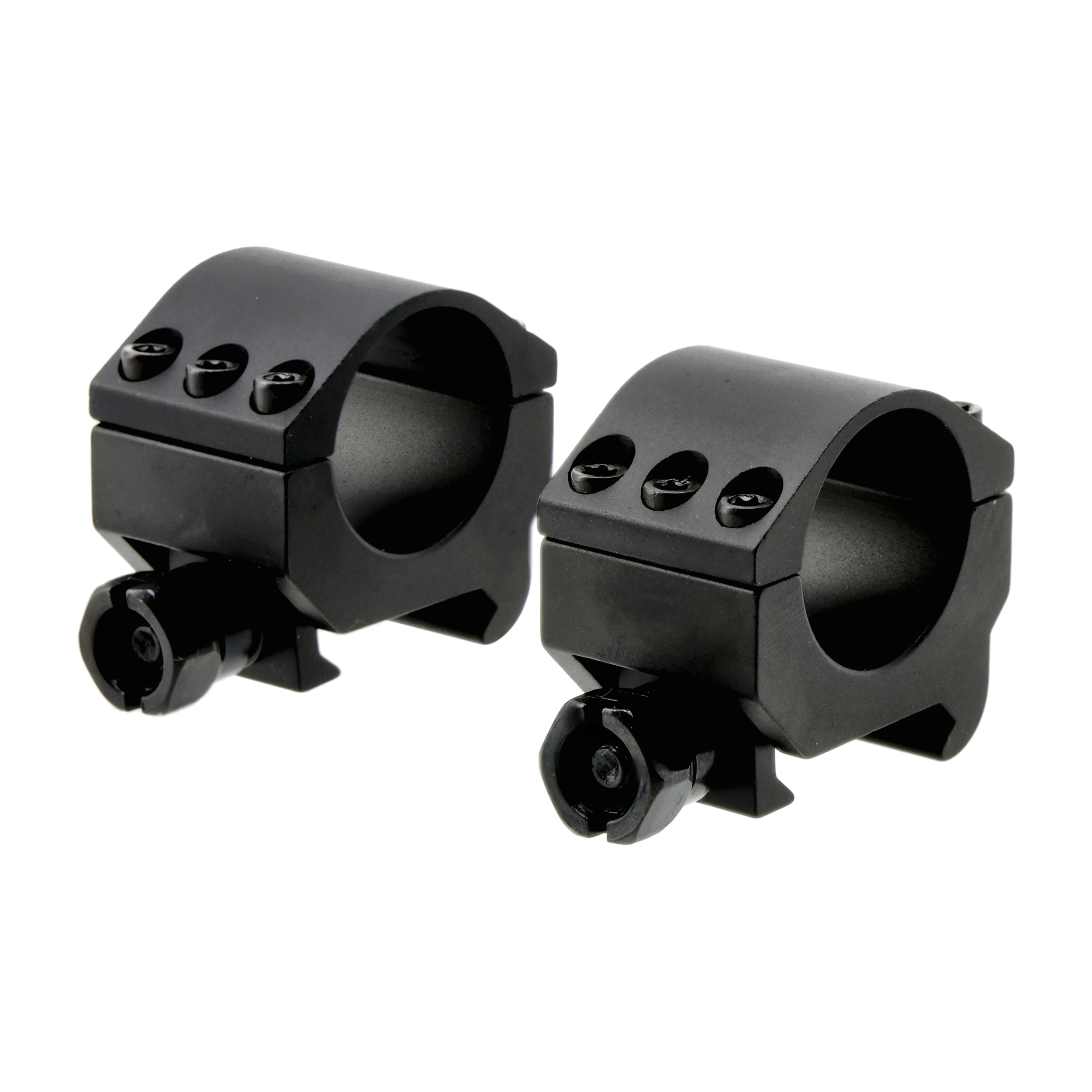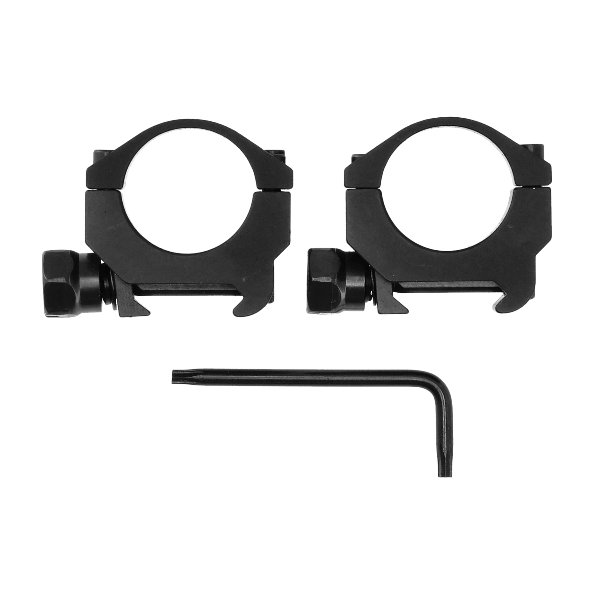 Pierścienie wykonano z anodowanego aluminium. Elementy są lekkie, dlatego nie zwiększą odczuwalnie masy karabinka. Precyzyjna konstrukcja oraz sześć śrub mocujących gwarantują pełną osiowość montażu lunety, stabilne utrzymanie zera oraz odporność na odrzut broni.