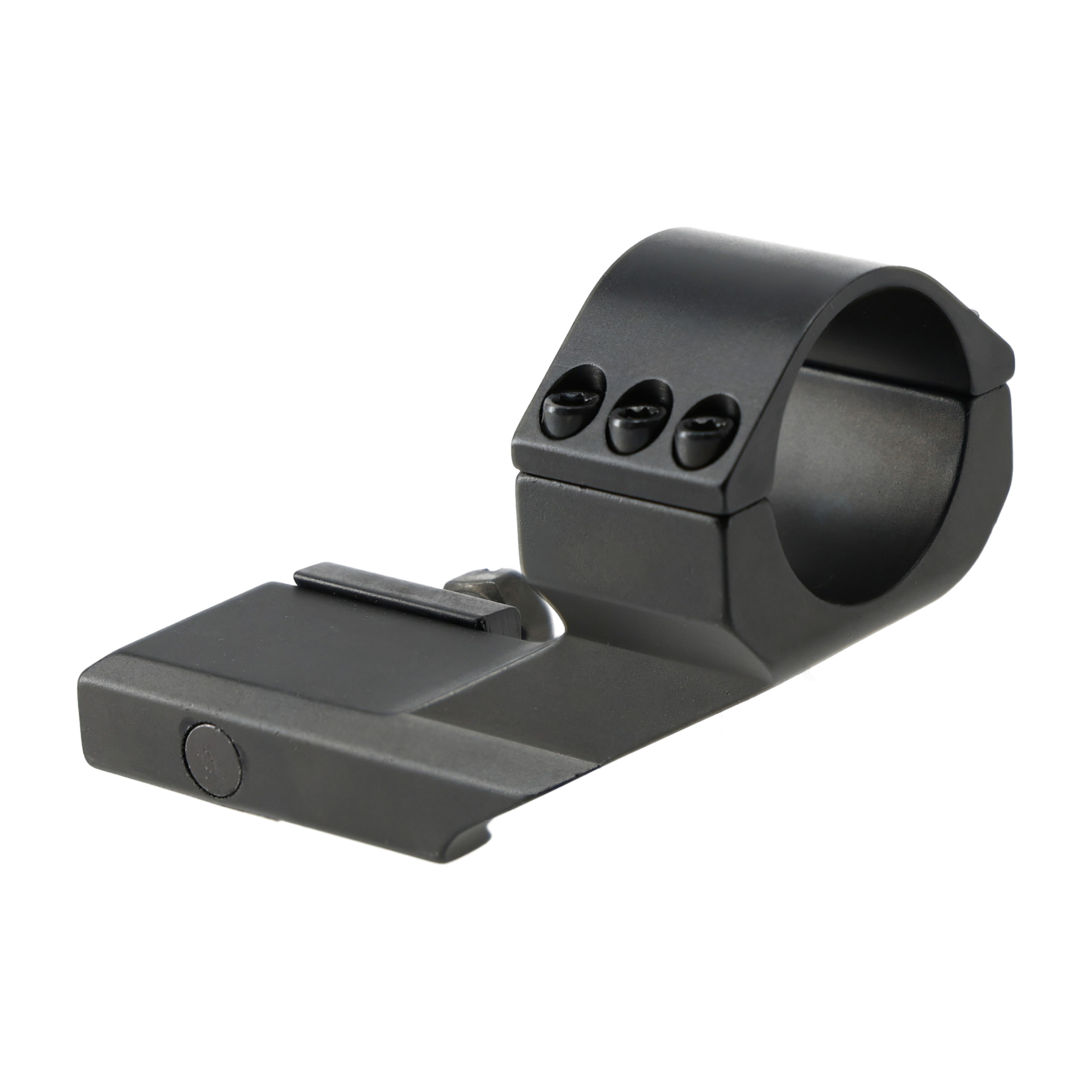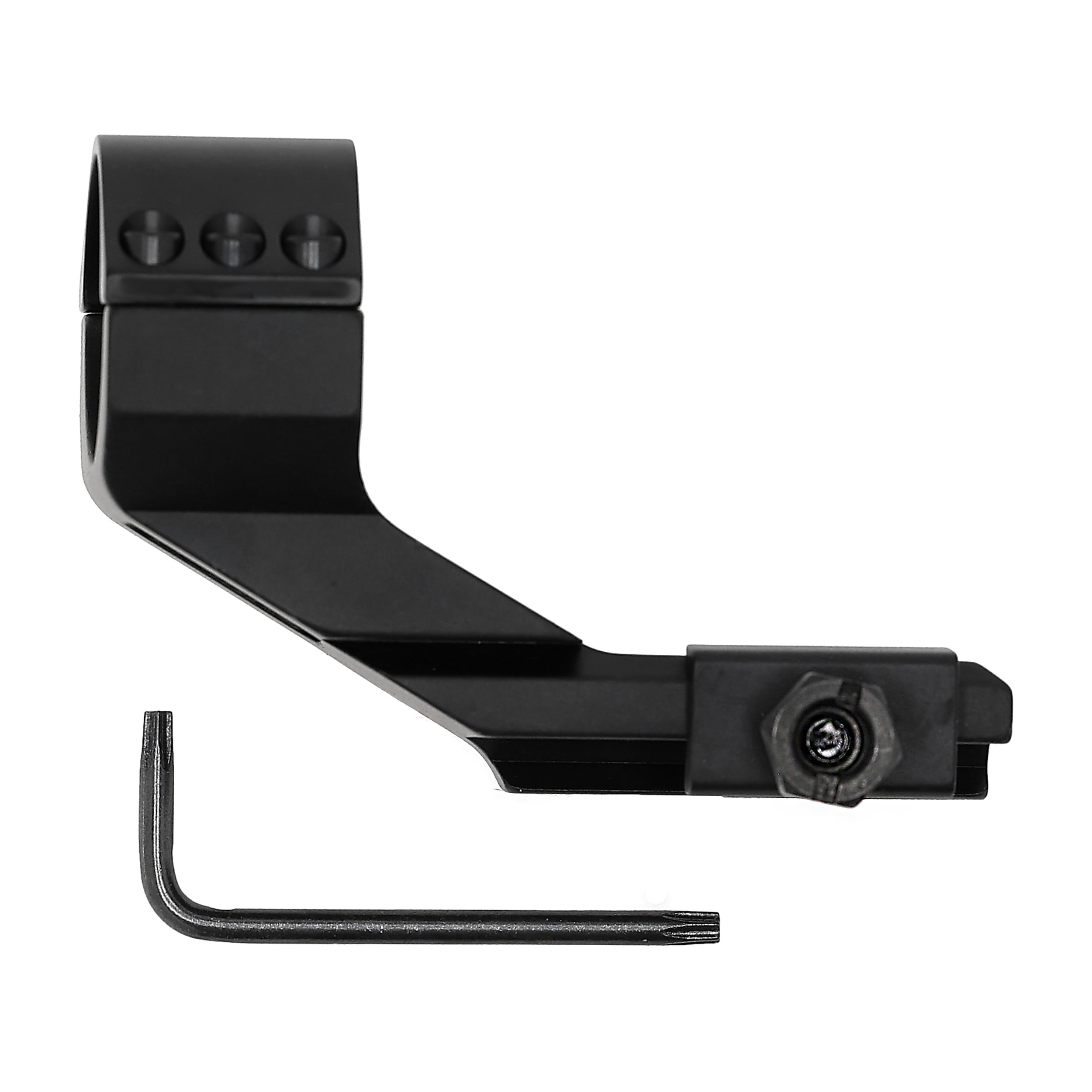Primary Arms High Cantilever 30 mm Mount to lekki, kątowy montaż pozwalający na zamocowanie lunety o 30 mm tubusie w pozycji lower 1/3 cowitness względem mechanicznych przyrządów celowniczych. Montaż zapewnia większą odległość od oka, a więc szerokie pole widzenia i większą świadomość sytuacyjną. Kolejną zaletą montażu Cantilever jest możliwość jednoczesnego korzystania z lunety biegowej oraz kolimatora (z montażem kątowym offset) lub mechanicznych przyrządów celowniczych.
