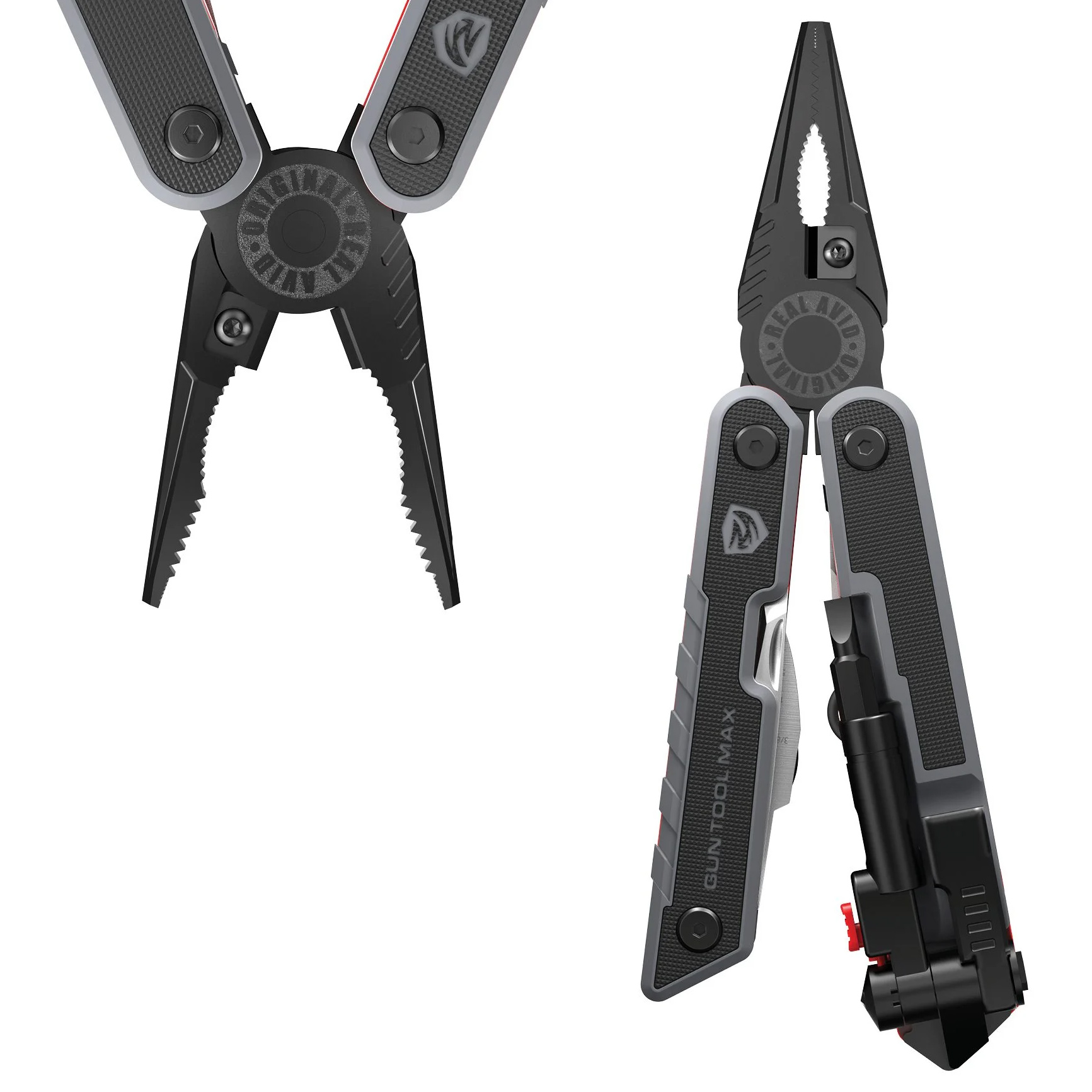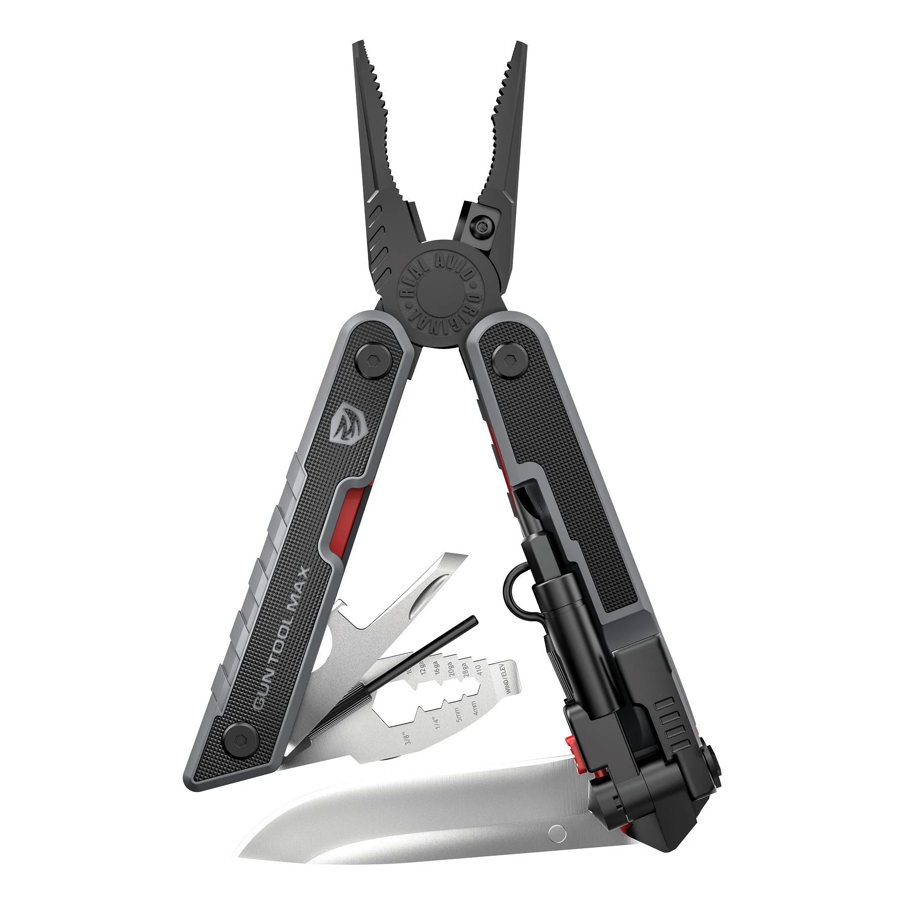Aż 37 różnych funkcji oferowanych przez multitool Real Avid Gun Tool Max pozwoli nam na pozbycie się większości uporczywych zanieczyszczeń z mechanizmów naszej broni. Możliwości multitoola nie ograniczają się jedynie do konserwacji broni – model wyposażony jest również w szereg akcesoriów charakterystycznych dla tego typu narzędzia. Zestaw dwunastu wymiennych bitów przyda się zarówno na co dzień, jak i podczas przekładania optyki na broni. Kombinerki z węglikowym przecinakiem do drutu okażą się przydatne podczas działań na strzelnicy, chociażby podczas korekcji stojaków na tarcze. Zintegrowane ostrze noża z częściowo ząbkowaną krawędzią tnącą okaże się pomocne zarówno podczas treningu strzeleckiego, jak i w codziennym funkcjonowaniu. Dzięki dołączonemu nylonowemu pokrowcowi multitool Real Avid Gun Tool Max może być zawsze przy nas gotowy do działania.