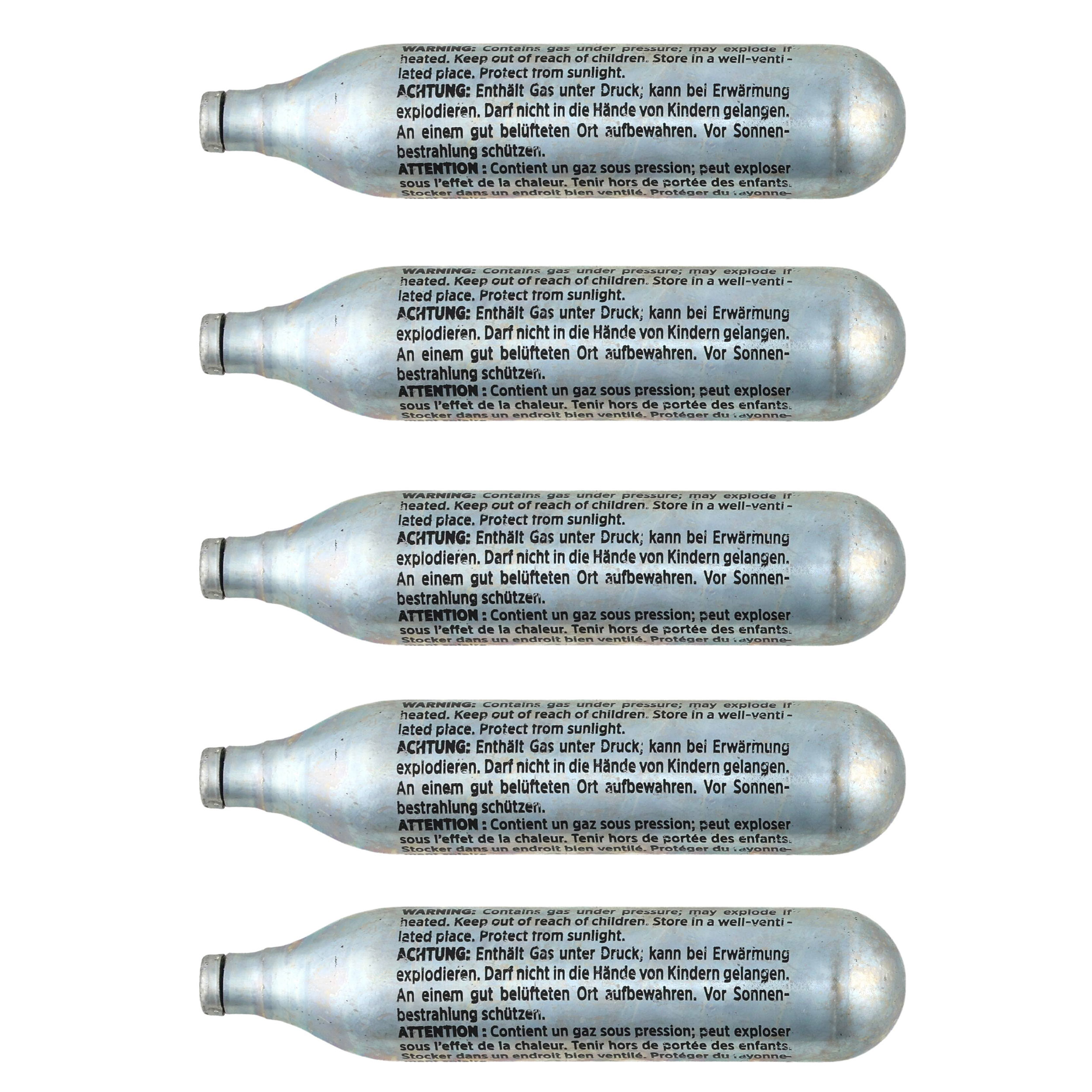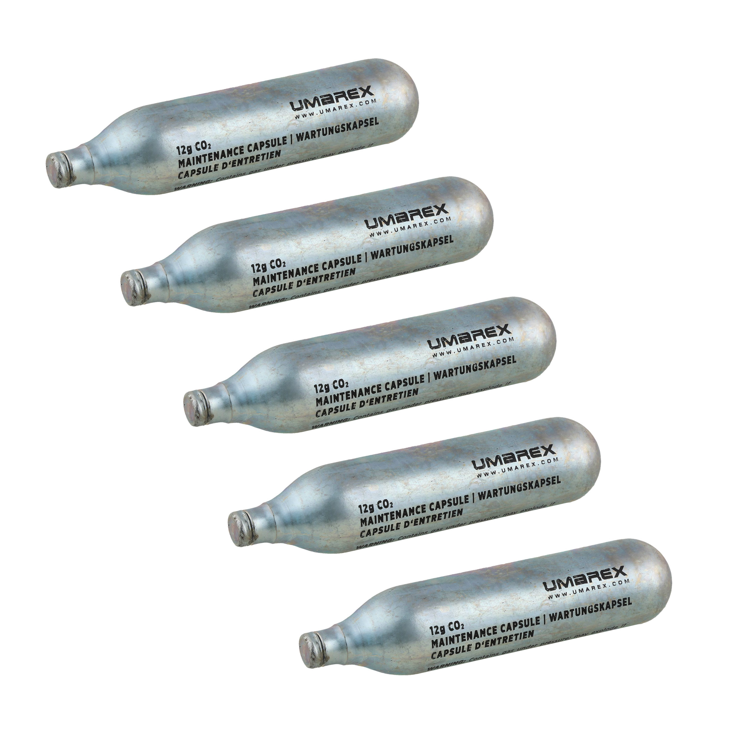 Umarex kapsuła CO2 o wadze 12 gramów to nabój ze sprężonym dwutlenkiem węgla, przeznaczonym do zasilania wiatrówek krótkich oraz długich, markerów RAM oraz replik ASG, kompatybilnych z tą formą zasilania. Pojedyncza kapsuła jest wykonana w całości z metalu. Opakowanie zawiera 5 sztuk kapsuł.