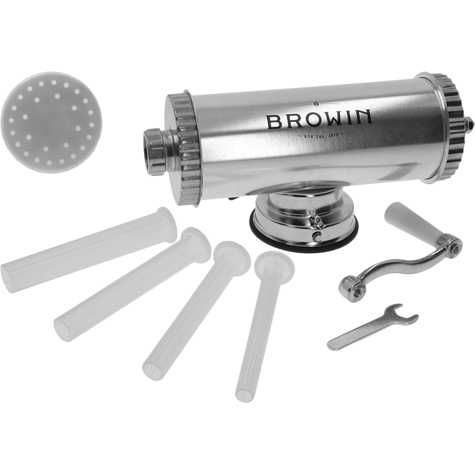 Wyprodukowana przez firmę Browin ręczna, pozioma nadziewarka o pojemności 1,5 kg to idealne narzędzie do produkcji domowych kiełbas, wędlin i potraw z podrobów.