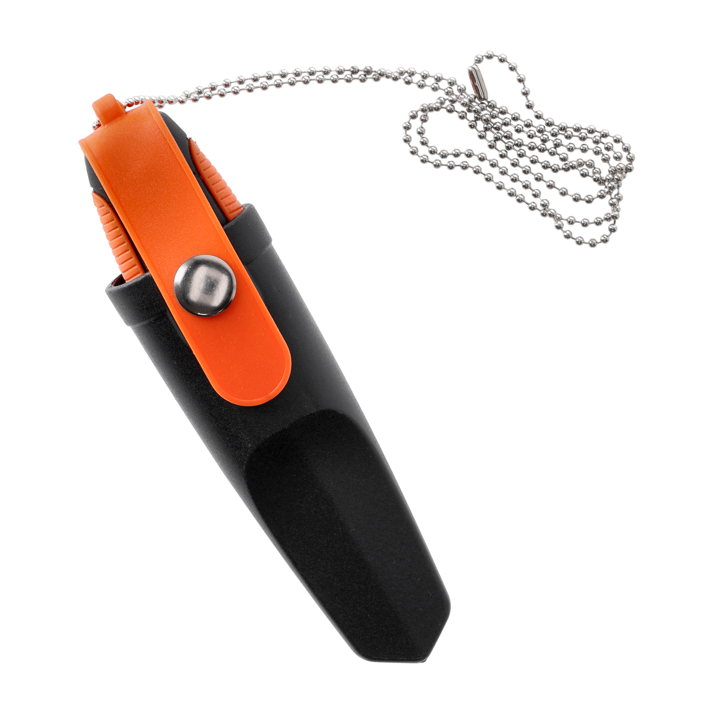 Do przenoszenia noża służy polimerowa pochewka formowana metodą wtryskową. Do pochewki dołączono metalowy łańcuszek kulkowy, która umożliwia noszenie noża na szyi.