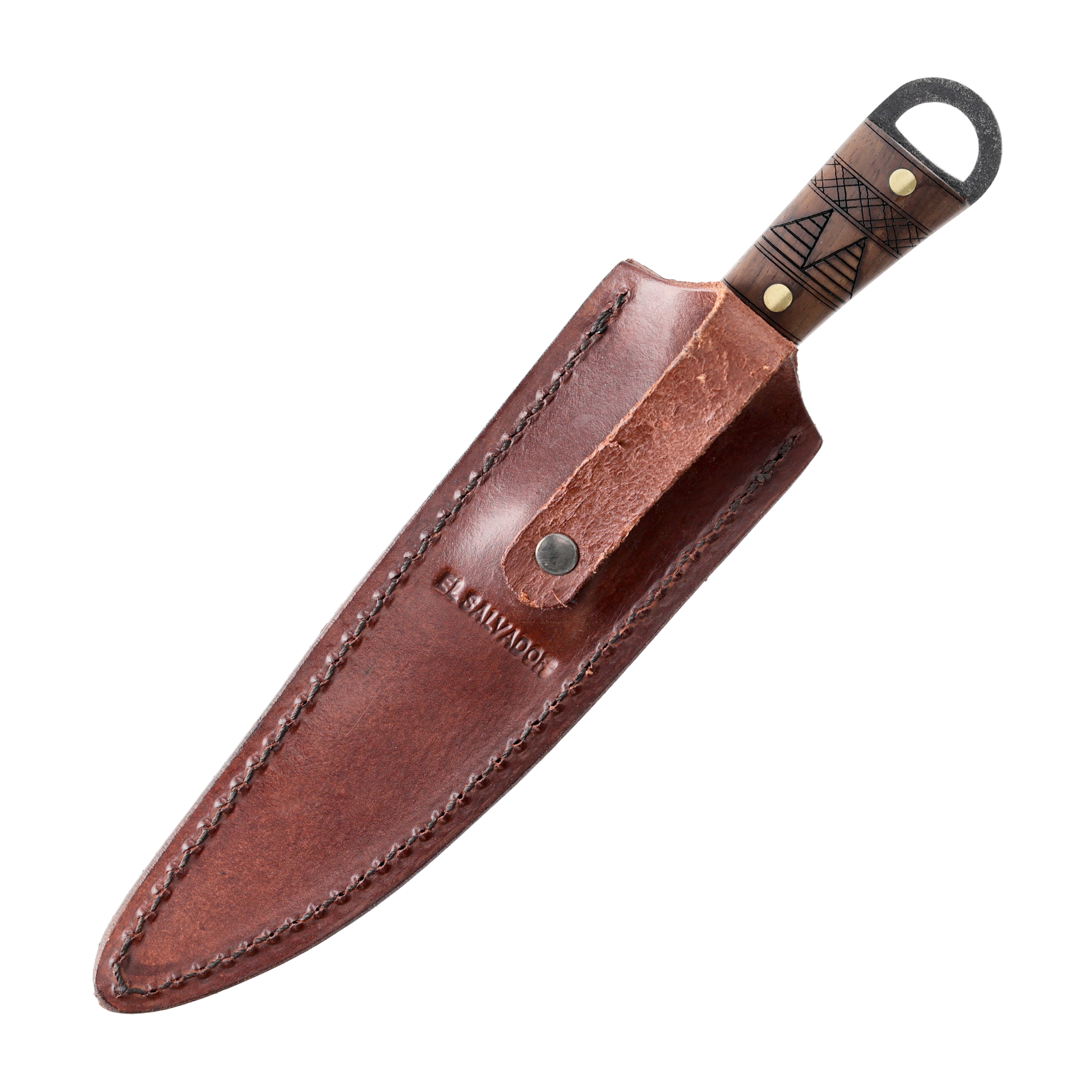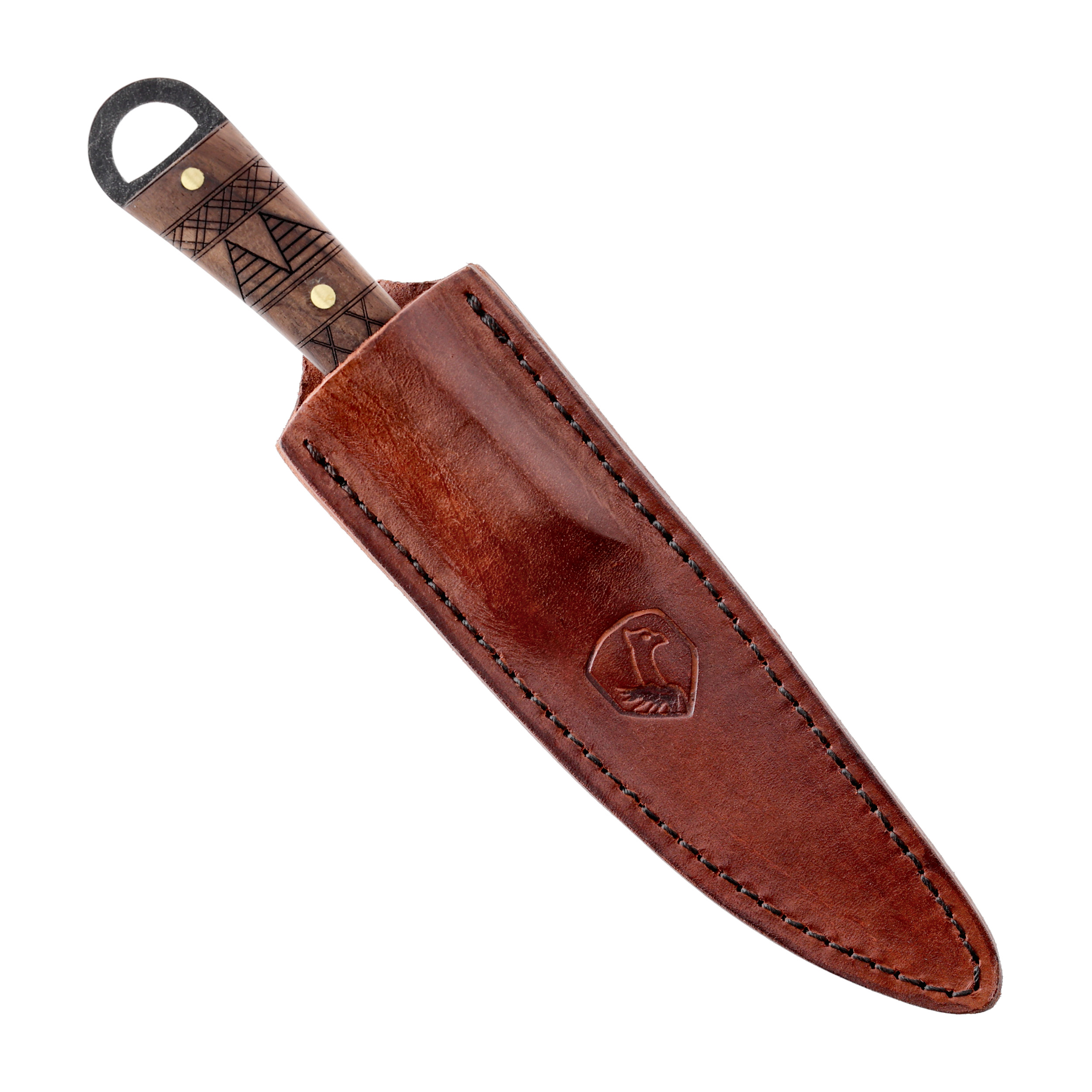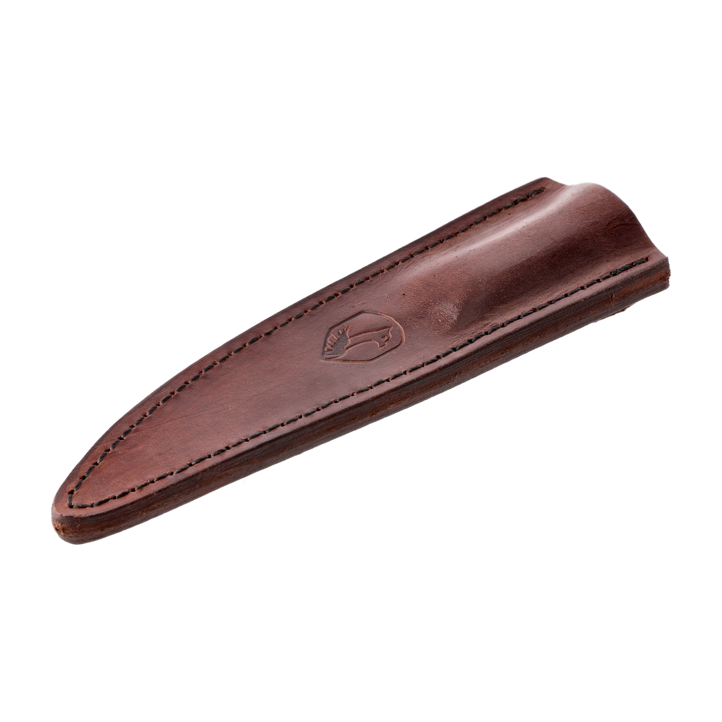 Producent zadbał również o pochwę. Uszyto ją ze skóry i zaopatrzono w szlufkę. Sprawia to, że nóż można wygodnie zawiesić przy pasie.