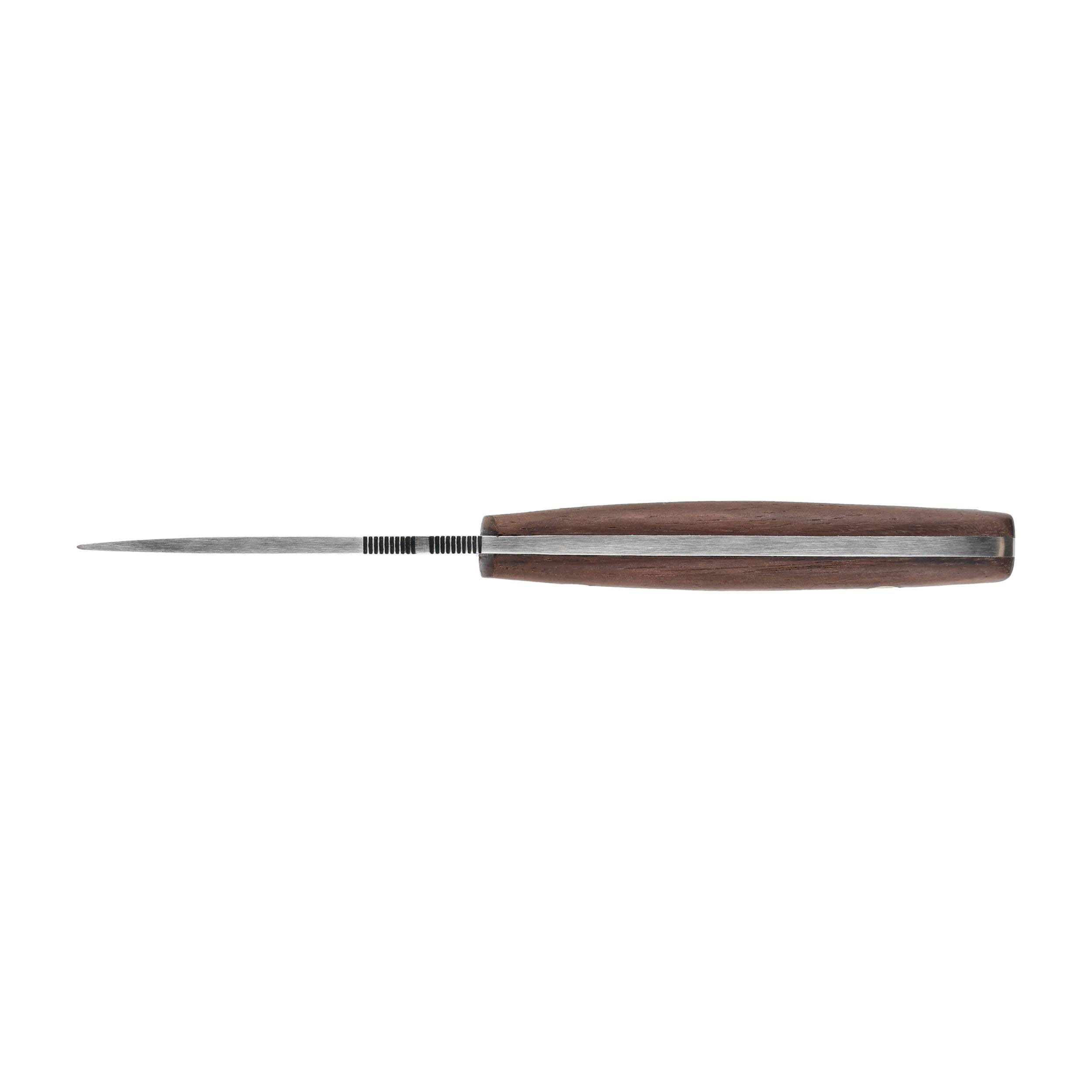 Okładziny rękojeści wykonane są z orzecha, który jest nie tylko wytrzymałym, ale także wyjątkowo estetycznym gatunkiem drewna. Daje użytkownikowi pewny i komfortowy chwyt, a jednocześnie dodaje nożowi autentycznego charakteru.