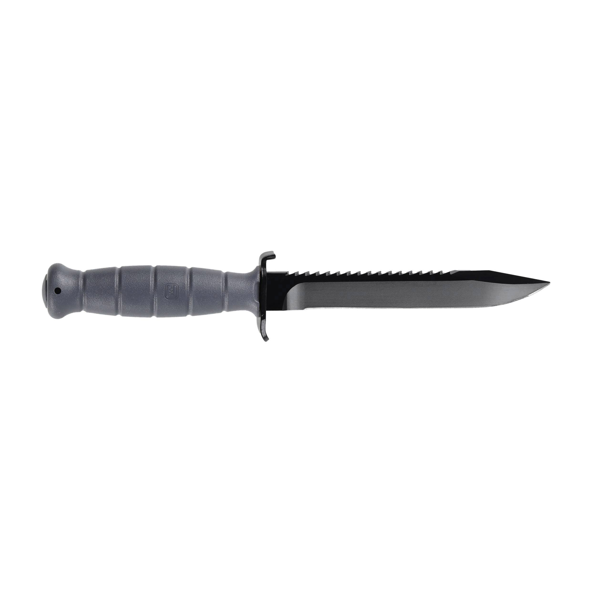 Rękojeść wykonano z tego samego polimeru, z którego austriacki koncern produkuje szkielety pistoletów bojowych Glock. Tworzywa to dobrze tłumi wstrząsy, jest antypoślizgowe, co w połączeniu z profilowanym kształtem rękojeści zapewnia wygodny i pewny chwyt. W tylnej części rękojeści znajduje się otwór, który pozwala na wplecenie linki zabezpieczającej. W nożu zastosowano obustronny jelec z kutej stali, który chroni dłoń przez zsunięciem na ostrze. Dodatkowo zagiętą część jelca można wykorzystywać jako otwieracz do butelek lub rampę dla kciuka podczas strugania.
