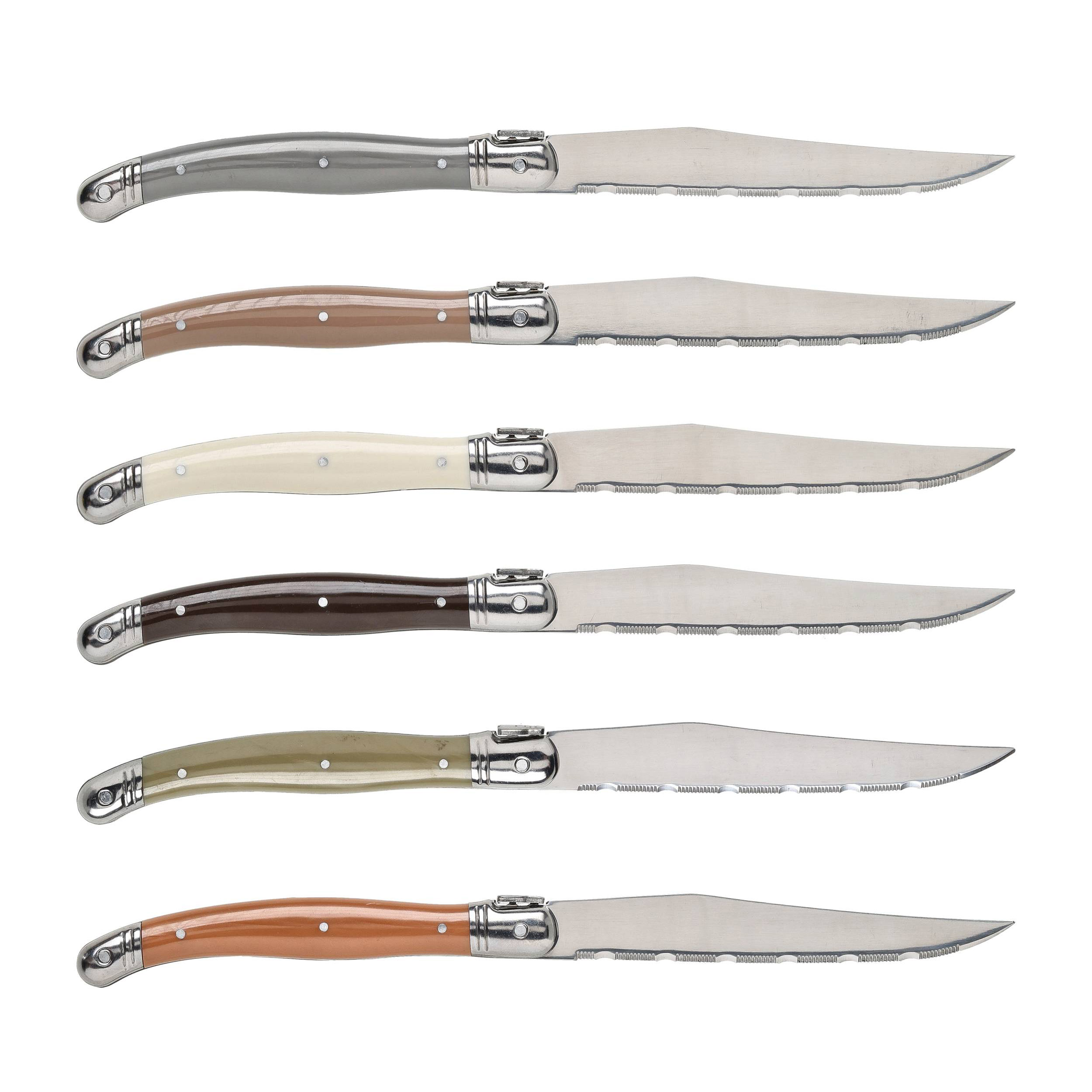 Komplet przeznaczonych do steków noży kuchennych marki Laguiole Style de Vie, gwarantujący komfort krojenia tej niekiedy wymagającej potrawy. Ząbkowana głownia pozwoli nam poradzić sobie z mniej delikatnymi wykrojami, a stylowy projekt noża doskonale wpisze się w estetykę kuchni w tradycyjnym stylu. Konstrukcja swoim wzornictwem nawiązuje do tradycyjnych prowansalskich noży składanych, których korzenie sięgają początków XIX wieku.