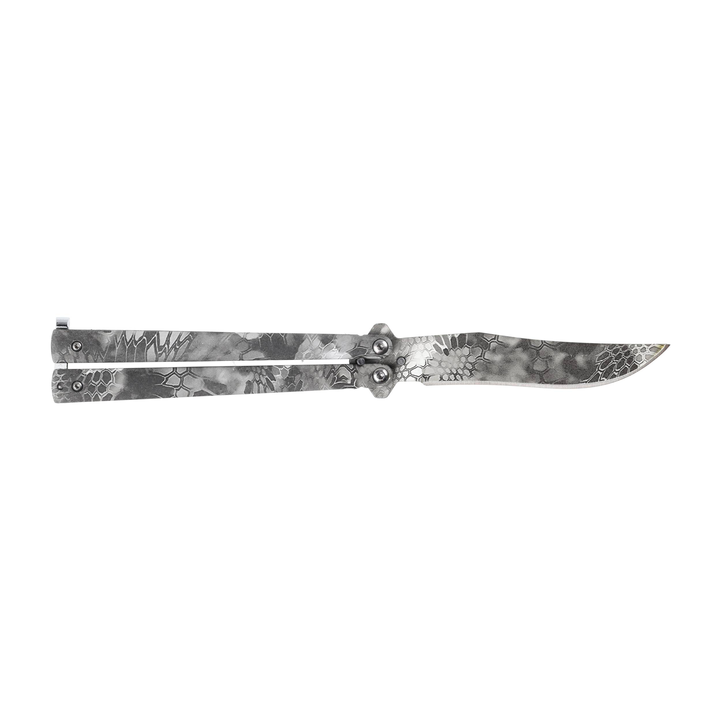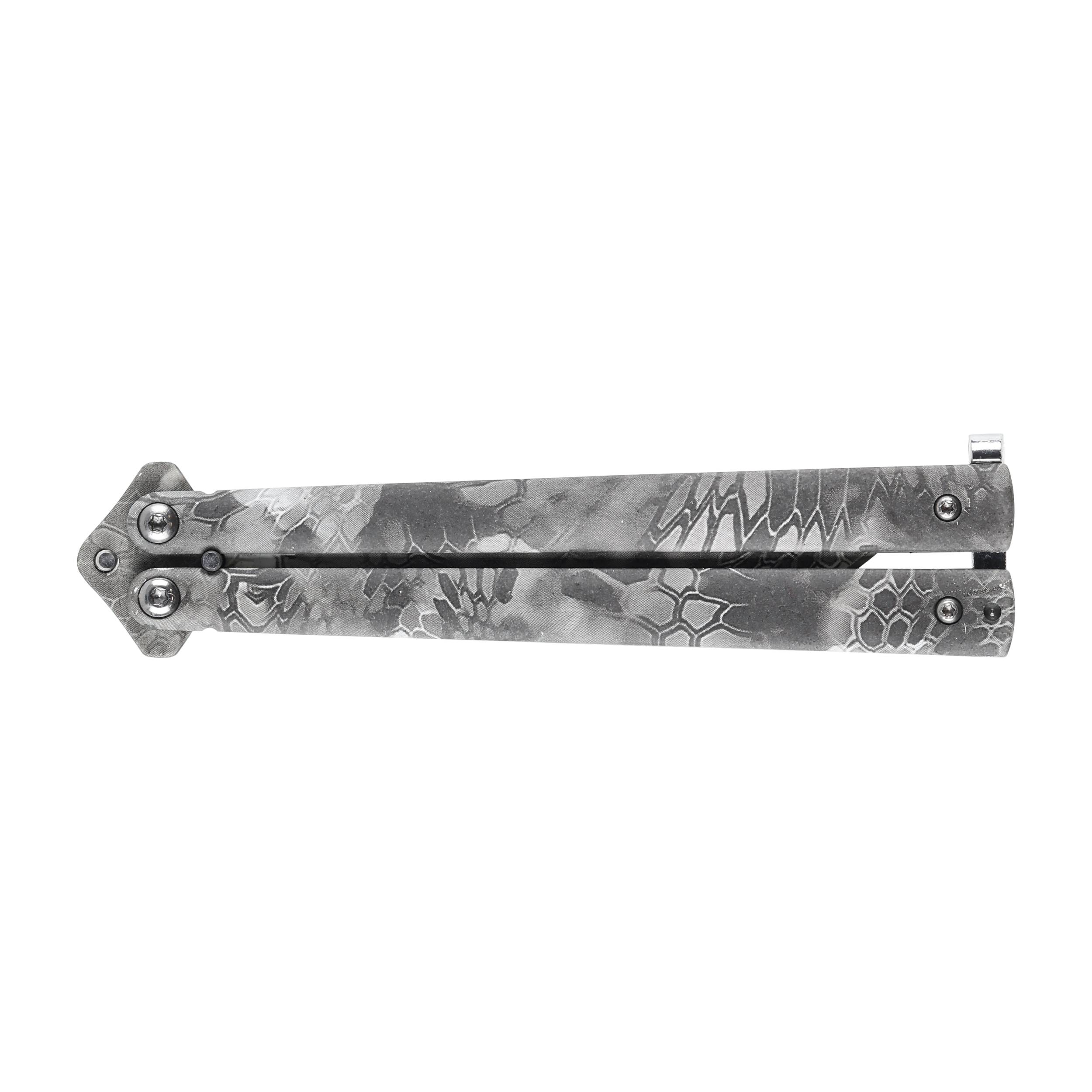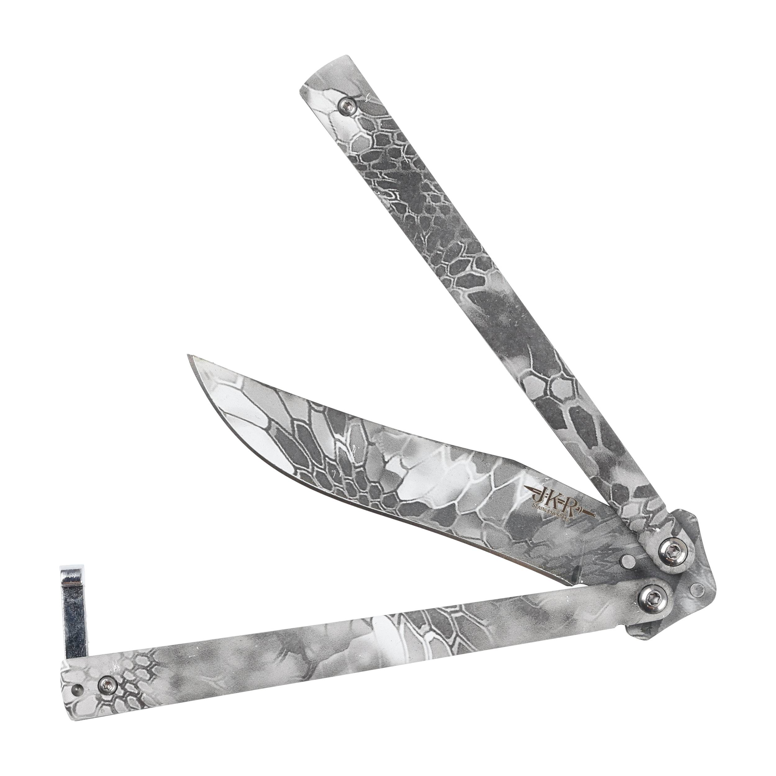 Joker JKR707 to budżetowy nóż motylkowy o solidnej metalowej konstrukcji i kamuflowanym wykończeniu.