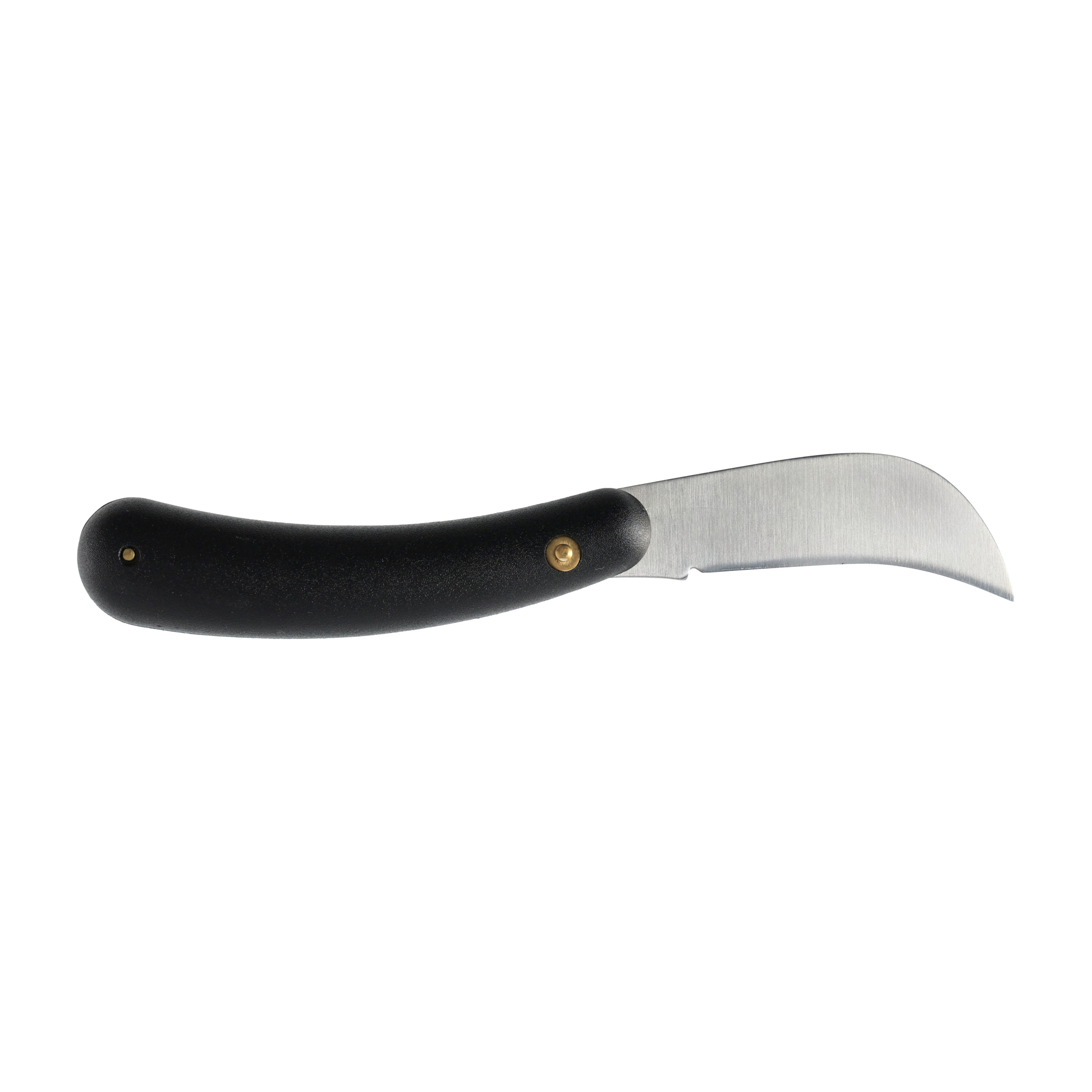 Nóż ma szeroką zakrzywioną głownię z dwustronnym ostrzem, dlatego doskonale sprawdzi się w pracach ogrodniczych m.in. szczepieniu drzew i krzewów, obcinaniu małych gałęzi w trudno dostępnych miejscach oraz wygładzaniu ran na gałęzi powstałych po obcięciu piłą. Składane 70 mm ostrze wykonano ze stali nierdzewnej 420. Hartowanie do twardości 52-55 HRC sprawia, że ostrze dosyć szybko tępi, jednak równie łatwo się ostrzy. Dlatego nawet za pomocą zwykłej kieszonkowej ostrzałki jesteśmy w stanie sprawnie wyostrzyć nóż w krótkim czasie, co jest niezwykle istotne w przypadku noża użytkowanego w sadownictwie. Stal 420 cechuje się wysoką odpornością na korozję, dlatego nie wymaga specjalnej konserwacji i pielęgnacji. Nóż ma profilowaną rękojeść z lekkiego i wytrzymałego tworzywa sztucznego, w której całkowicie chowa się ostrze po złożeniu.