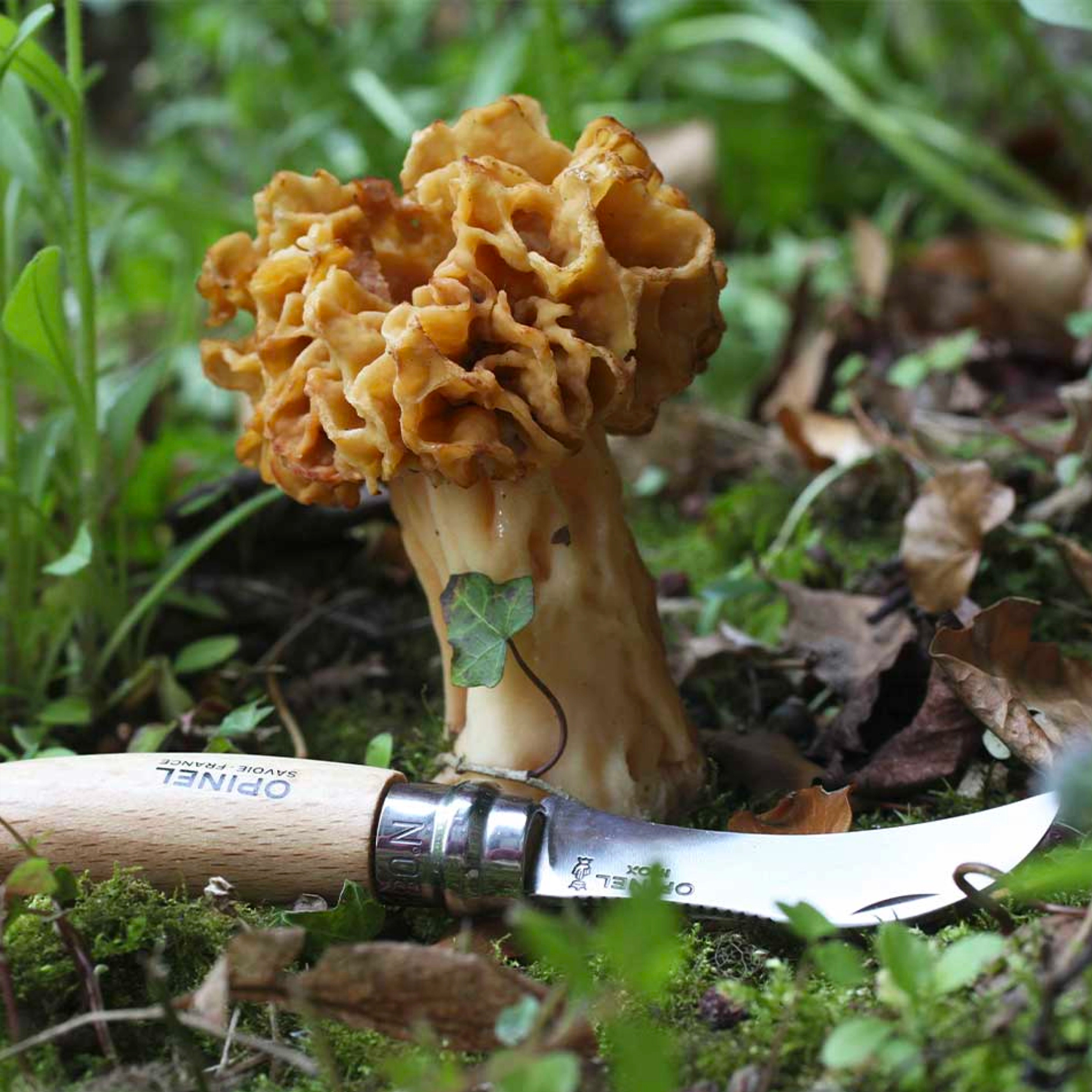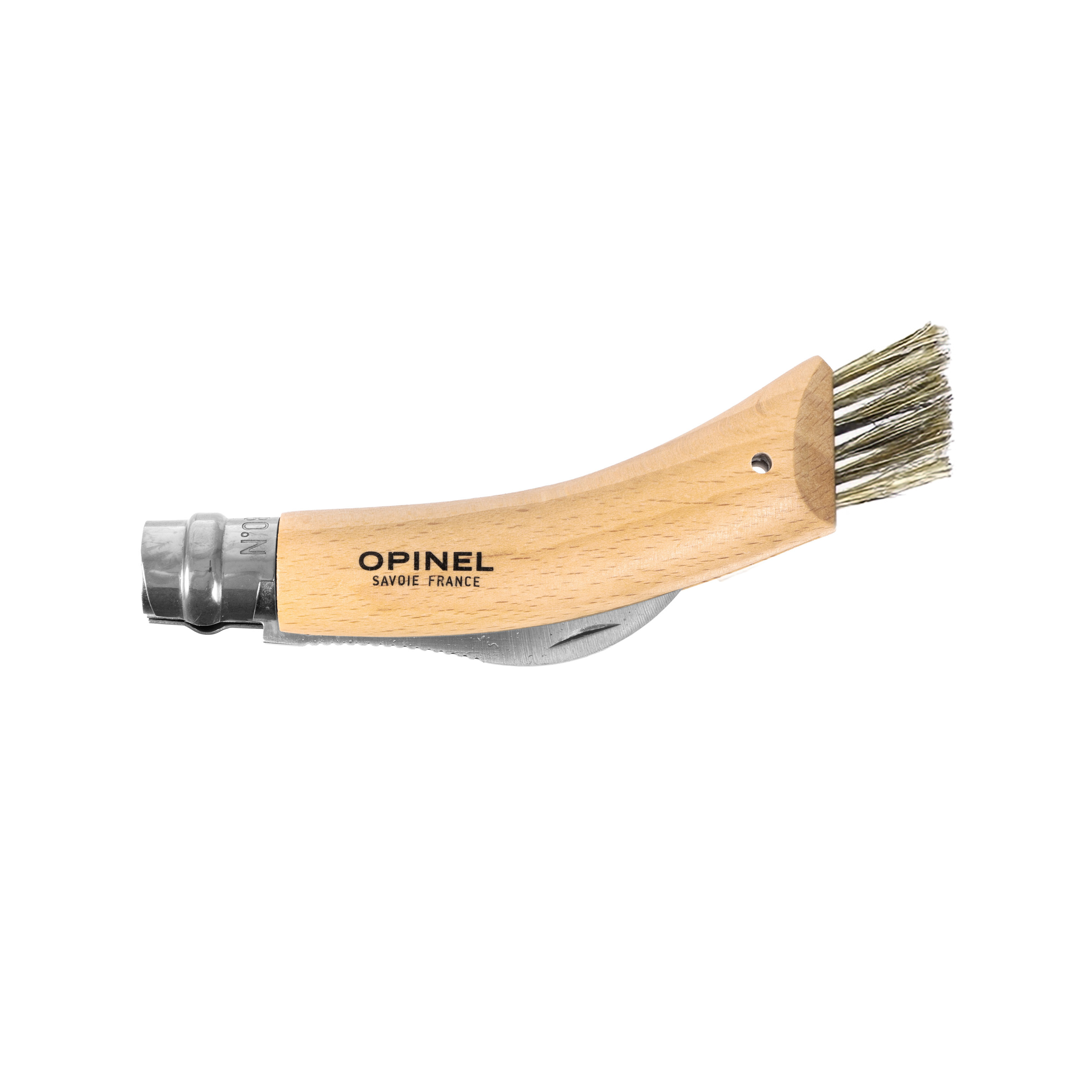 Opinel 8 na grzyby w blistrze to składany nóż dla grzybiarzy wyposażony w zakrzywione ostrze ze stali nierdzewnej, blokadę Virobloc, oraz pędzelek do oczyszczania.
